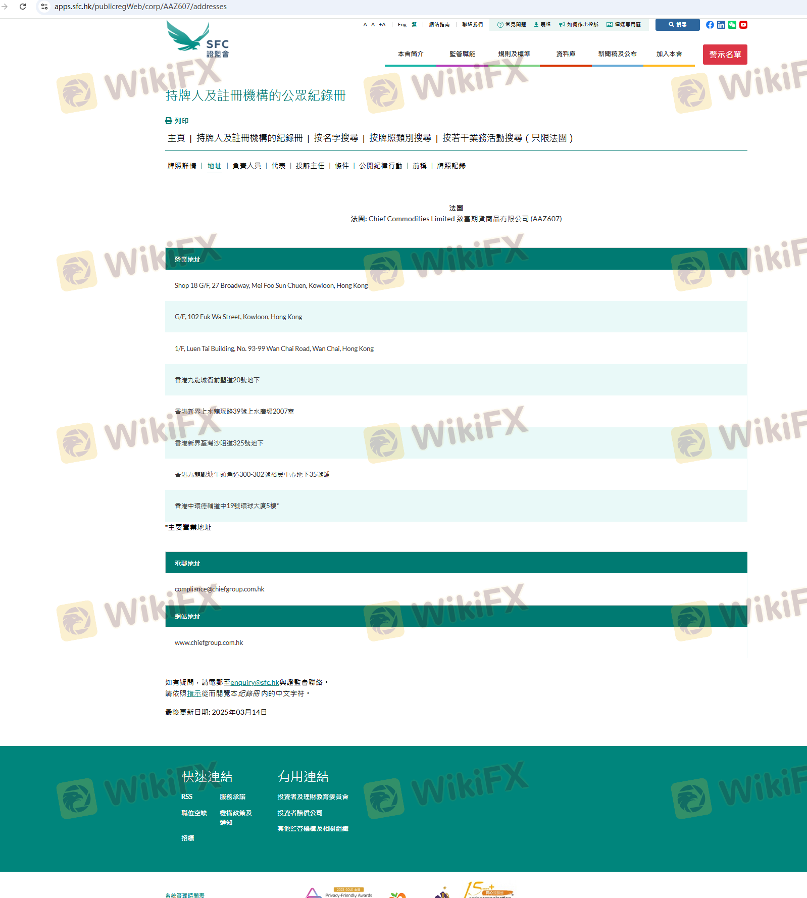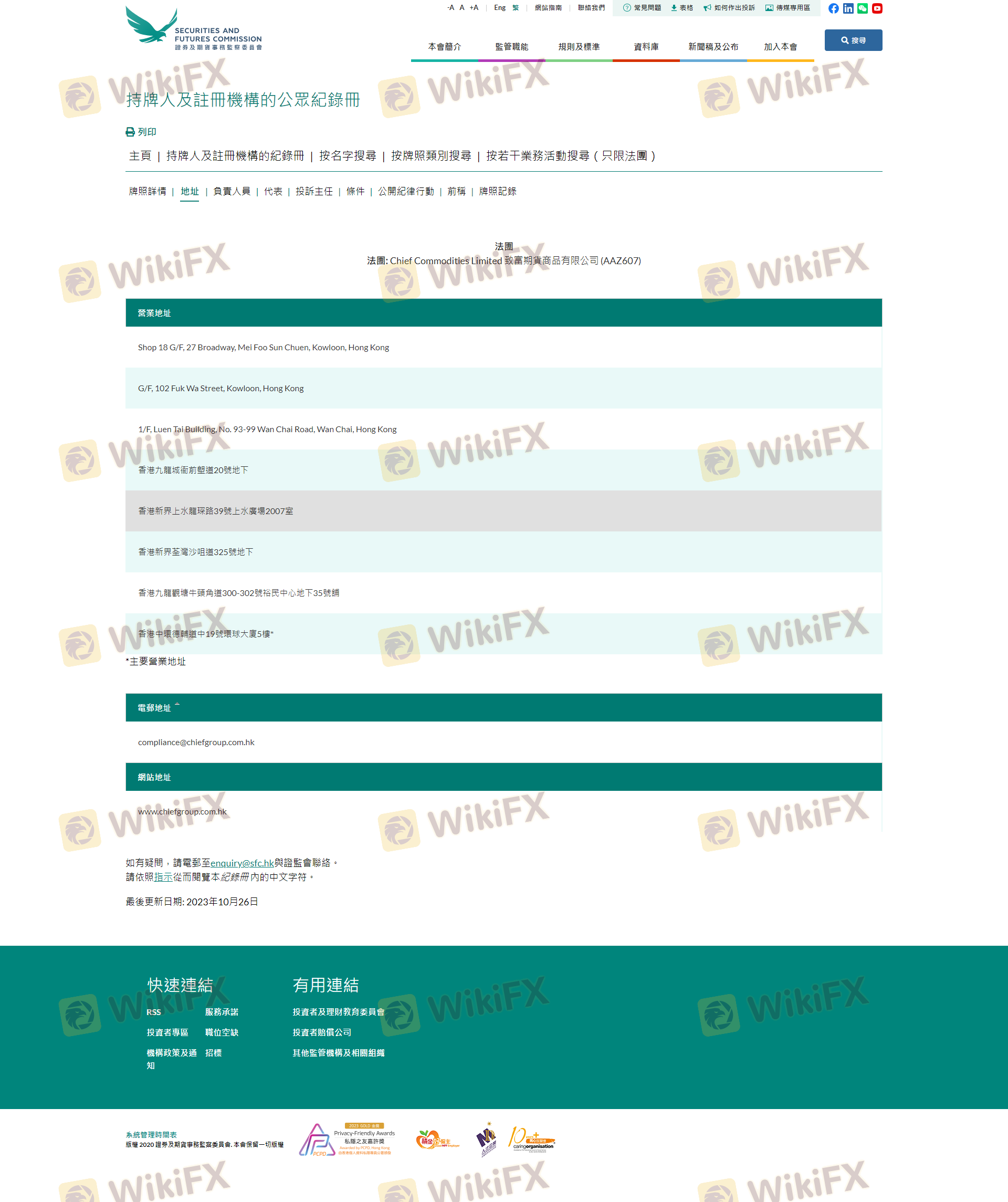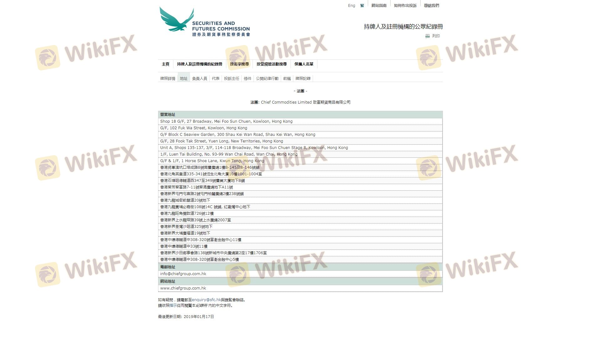 เกี่ยวกับความถูกต้องตามกฎหมายของโบรกเกอร์ฟอเร็กซ์ CHIEF ทางบริษัทได้มีการจัดเตรียม ฮ่องกง SFC และ (ยังมีการสำรวจภาคสนามเกี่ยวกับความปลอดภัย)