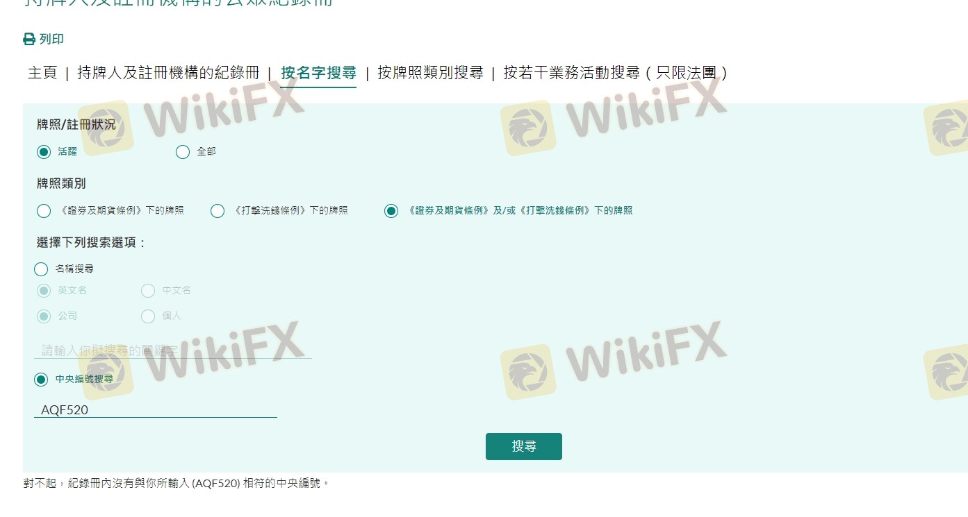 | SFC (คณะกรรมการกำกับหลักทรัพย์และสัญญาซื้อขายล่วงหน้า) | AQF 520 | ฮ่องกง | เพิกถอนแล้ว |