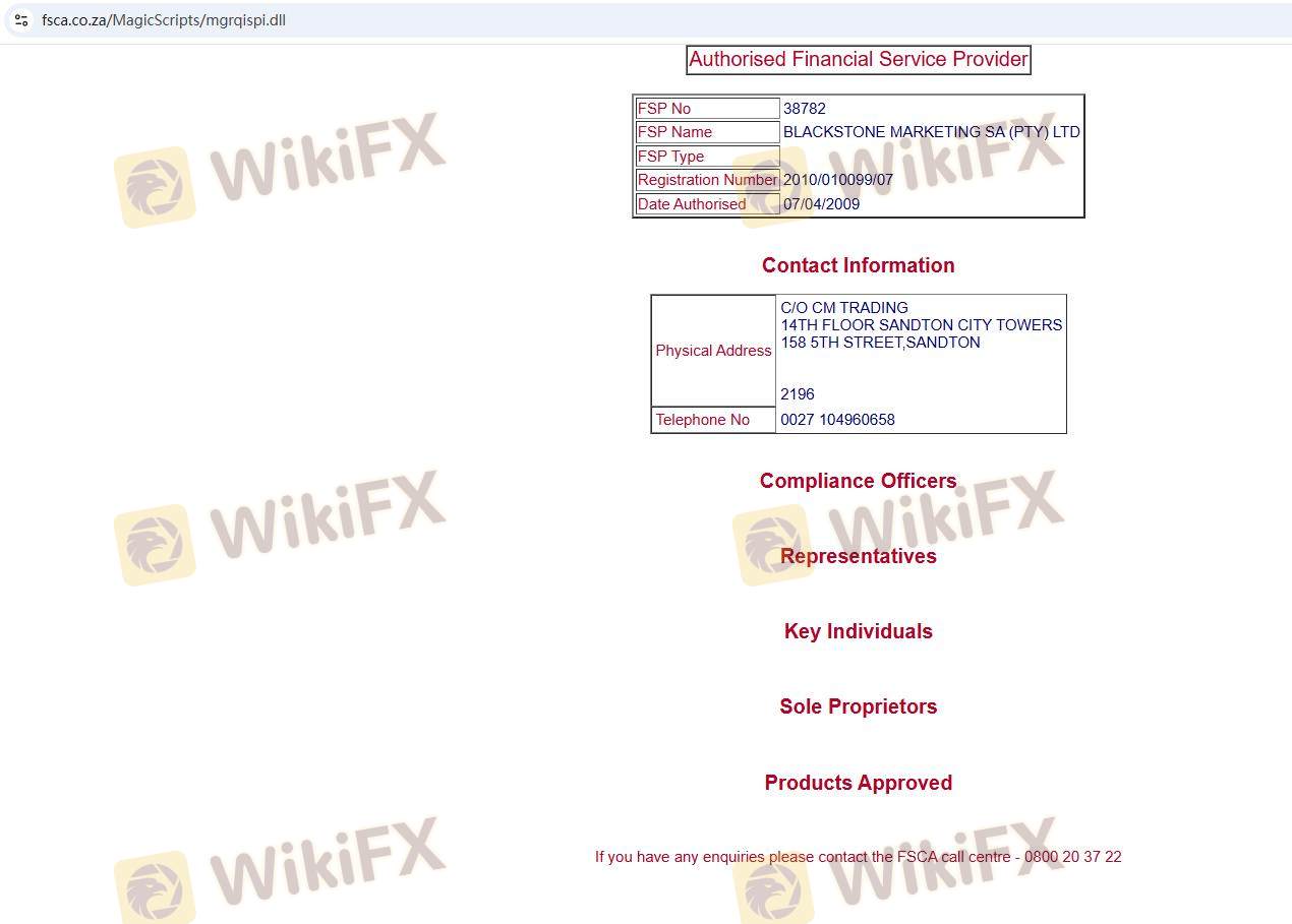 กรอบการกำกับดูแลที่เกี่ยวข้องกับบรอกเกอร์ฟอเร็กซ์เป็นปัจจัยสำคัญในการประเมินความถูกต้องตามกฎหมาย CM Trading ดำเนินงานภายใต้การกำกับดูแลของหน่วยงานกำกับดูแลสองแห่ง ได้แก่ Financial Sector Conduct Authority (FSCA) ในแอฟริกาใต้ และ Financial Services Authority (FSA) ในเซเชลส์ แม้ว่าการกำกับดูแลจะสามารถให้ระดับความปลอดภัยแก่เทรดเดอร์ได้ แต่คุณภาพและชื่อเสียงของหน่วยงานกำกับดูแลมีบทบาทสำคัญในการประเมินโดยรวม