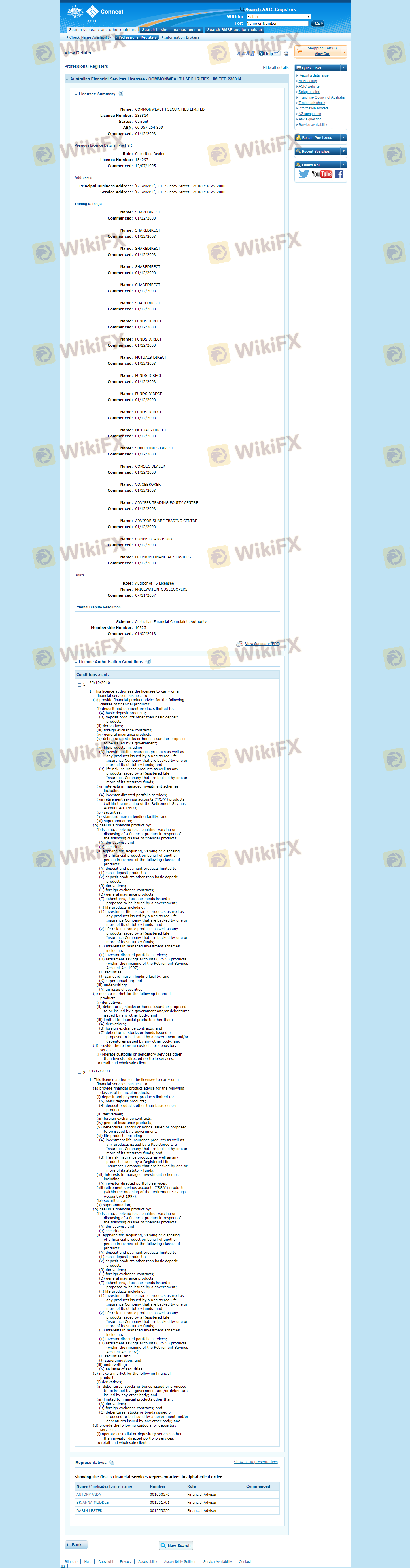 เกี่ยวกับความถูกต้องตามกฎหมายของโบรกเกอร์ฟอเร็กซ์ CommSec ทางบริษัทได้มีการจัดเตรียม ออสเตรเลีย ASIC และ (ยังมีการสำรวจภาคสนามเกี่ยวกับความปลอดภัย)