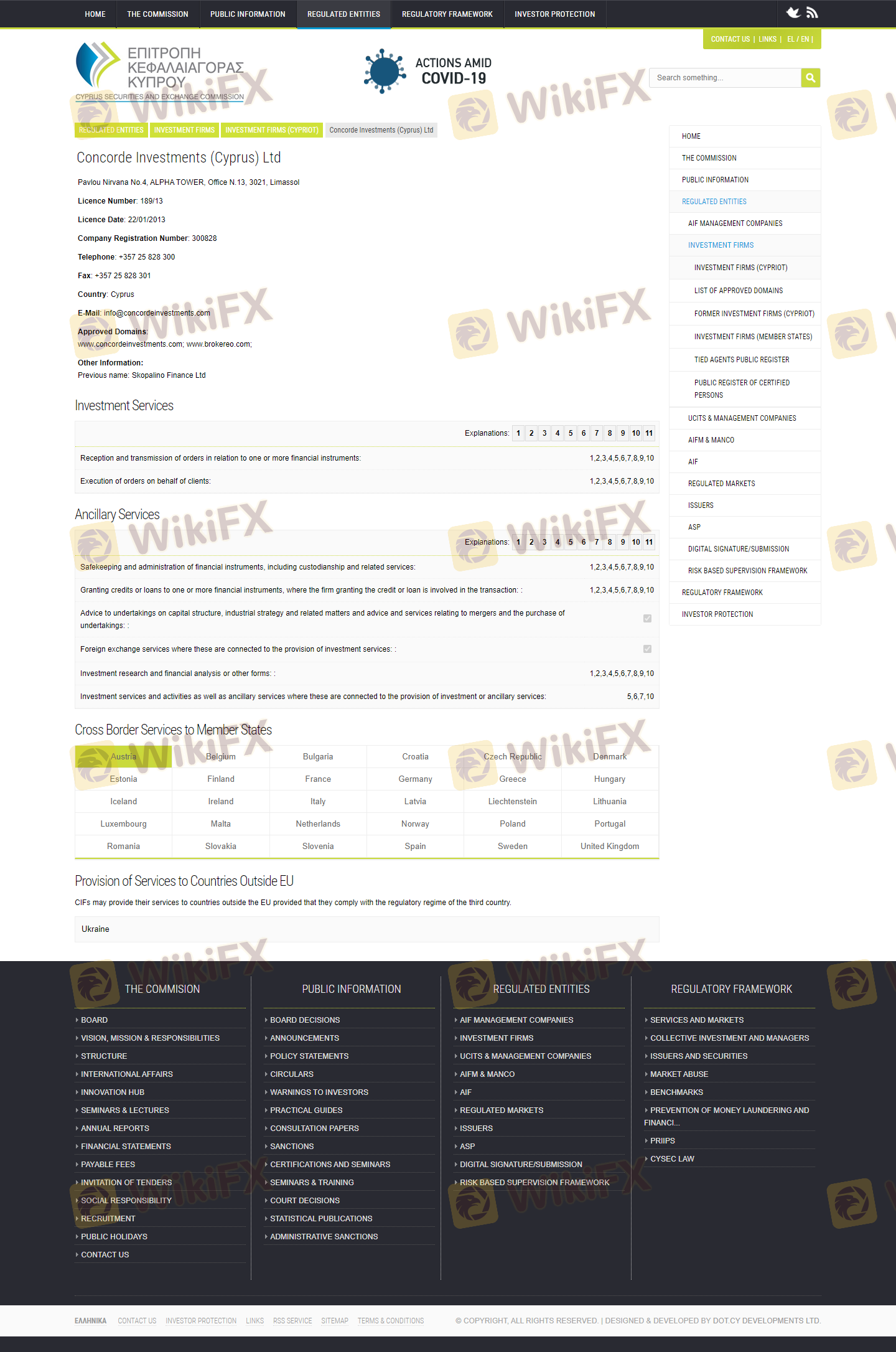 เกี่ยวกับความถูกต้องตามกฎหมายของโบรกเกอร์ฟอเร็กซ์ Concorde Investments ทางบริษัทได้มีการจัดเตรียม ประเทศไซปรัส CYSEC และ (ยังมีการสำรวจภาคสนามเกี่ยวกับความปลอดภัย)