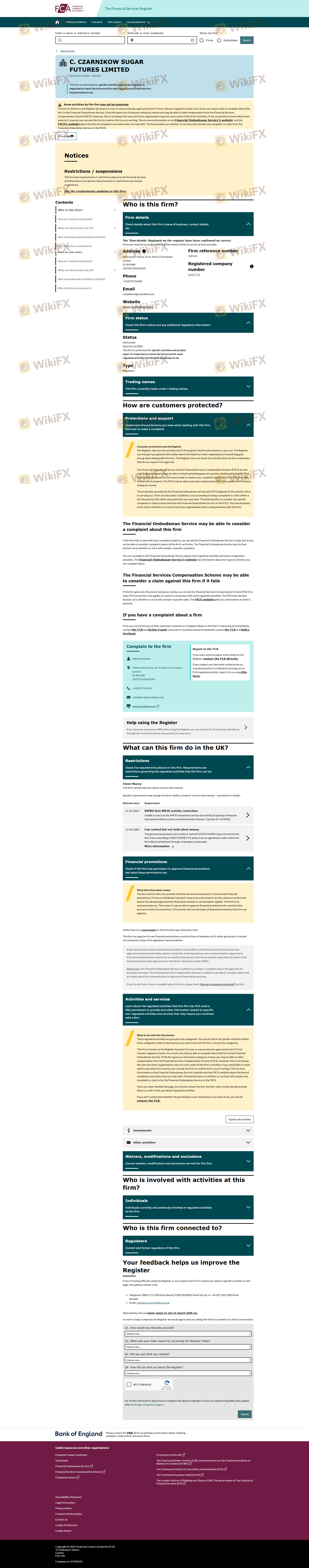 เกี่ยวกับความถูกต้องตามกฎหมายของโบรกเกอร์ฟอเร็กซ์ Czarnikow ทางบริษัทได้มีการจัดเตรียม สหราชอาณาจักร FCA และ (ยังมีการสำรวจภาคสนามเกี่ยวกับความปลอดภัย)