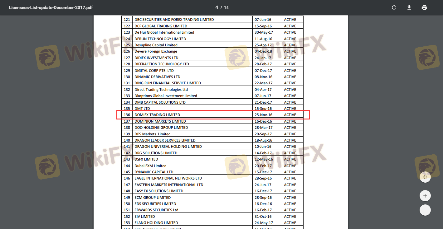เกี่ยวกับความถูกต้องตามกฎหมายของโบรกเกอร์ฟอเร็กซ์ DomiFX ทางบริษัทได้มีการจัดเตรียม วานูอาตู VFSC และ