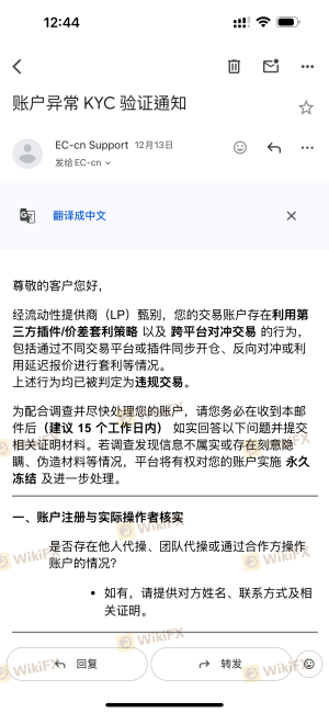 ในขณะที่ EC Markets ดูเหมือนจะเป็นโบรกเกอร์ที่ถูกต้องตามกฎหมายด้วยการกำกับดูแลด้านกฎระเบียบที่แข็งแกร่ง ผู้เทรดควรตระหนักถึงความเสี่ยงที่มีอยู่ในการเทรดฟอเร็กซ์ ขอแนะนำให้เริ่มต้นด้วยบัญชีทดลองเพื่อทำความคุ้นเคยกับแพลตฟอร์มและคุณสมบัติต่างๆ ก่อนที่จะลงทุนด้วยเงินจริง