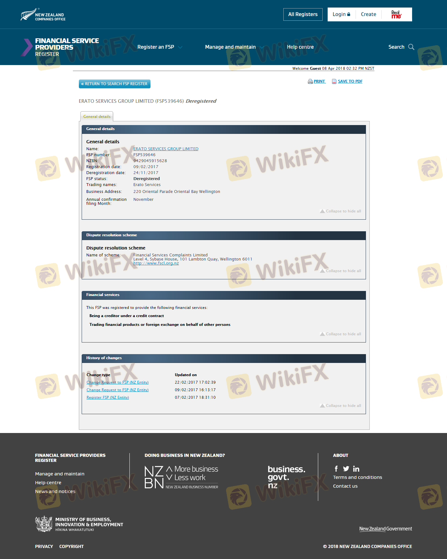 เกี่ยวกับความถูกต้องตามกฎหมายของโบรกเกอร์ฟอเร็กซ์ EratoFX ทางบริษัทได้มีการจัดเตรียม นิวซีแลนด์ FSPR และ