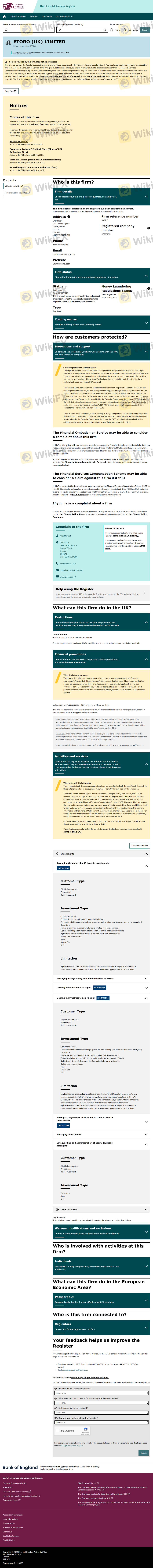 เกี่ยวกับความถูกต้องตามกฎหมายของโบรกเกอร์ฟอเร็กซ์ eToro ทางบริษัทได้มีการจัดเตรียม ออสเตรเลีย ASIC, ประเทศไซปรัส CYSEC, สหราชอาณาจักร FCA, สหรัฐอาหรับเอมิเรตส์ ADGM, สิงคโปร์ MAS, เซเชลส์ FSA และ (ยังมีการสำรวจภาคสนามเกี่ยวกับความปลอดภัย)