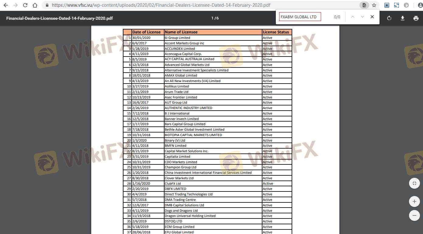 เกี่ยวกับความถูกต้องตามกฎหมายของโบรกเกอร์ฟอเร็กซ์ FXABM ทางบริษัทได้มีการจัดเตรียม วานูอาตู VFSC และ