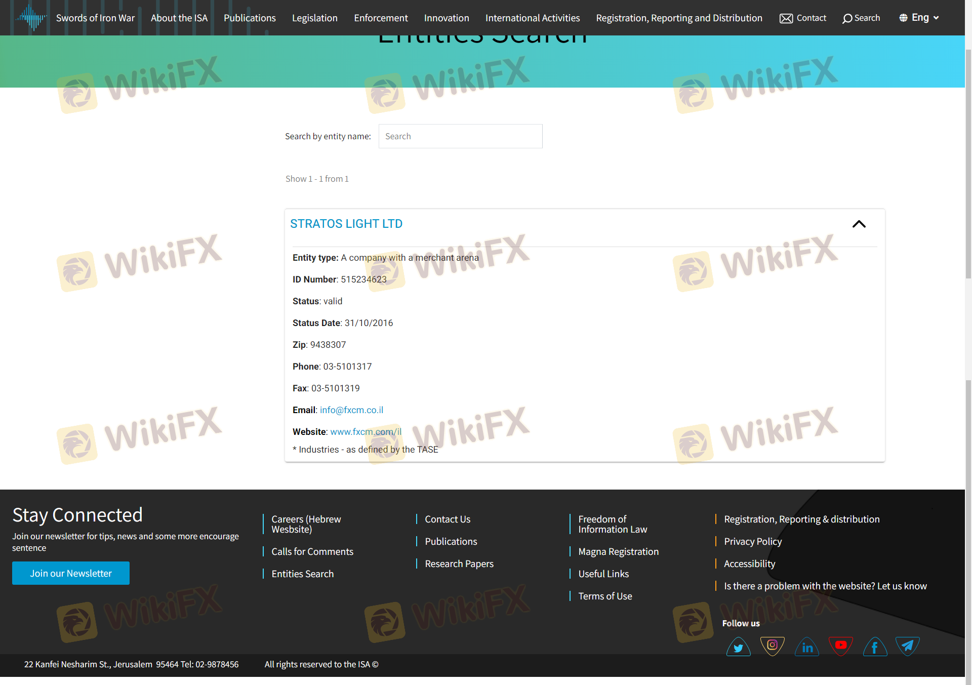 เกี่ยวกับความถูกต้องตามกฎหมายของโบรกเกอร์ฟอเร็กซ์ FXCM ทางบริษัทได้มีการจัดเตรียม ออสเตรเลีย ASIC, สหราชอาณาจักร FCA, ประเทศไซปรัส CYSEC, อิสราเอล ISA และ (ยังมีการสำรวจภาคสนามเกี่ยวกับความปลอดภัย)
