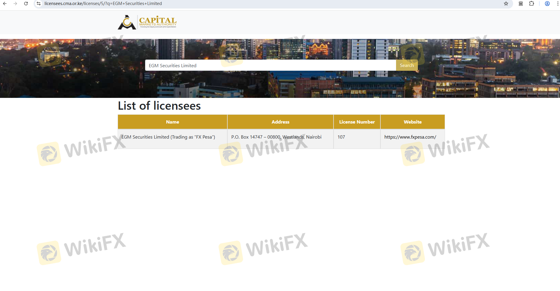 เกี่ยวกับความถูกต้องตามกฎหมายของโบรกเกอร์ฟอเร็กซ์ FXPesa ทางบริษัทได้มีการจัดเตรียม ประเทศเคนย่า CMA และ