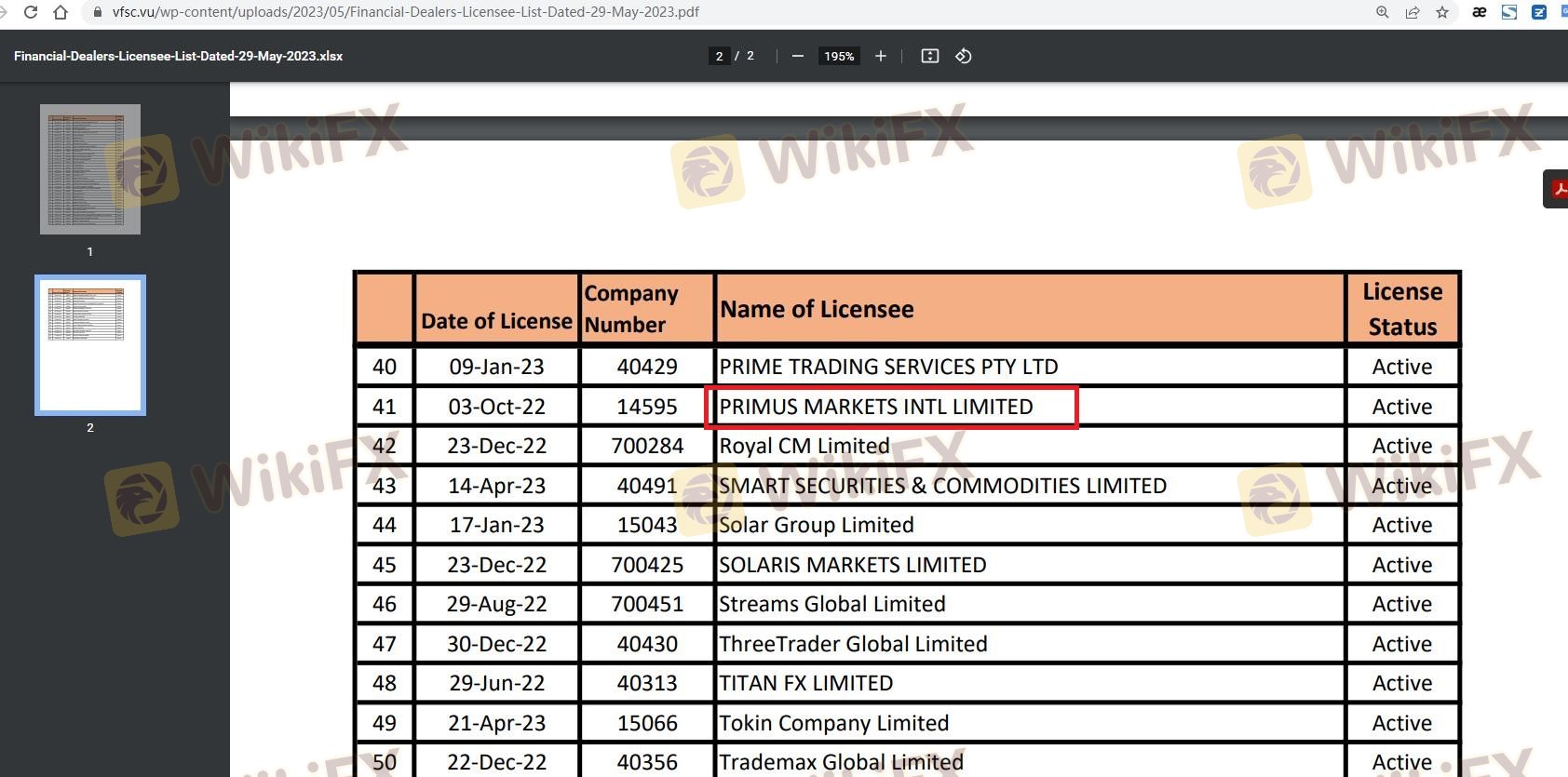 เกี่ยวกับความถูกต้องตามกฎหมายของโบรกเกอร์ฟอเร็กซ์ FXPRIMUS ทางบริษัทได้มีการจัดเตรียม ประเทศไซปรัส CYSEC, วานูอาตู VFSC และ