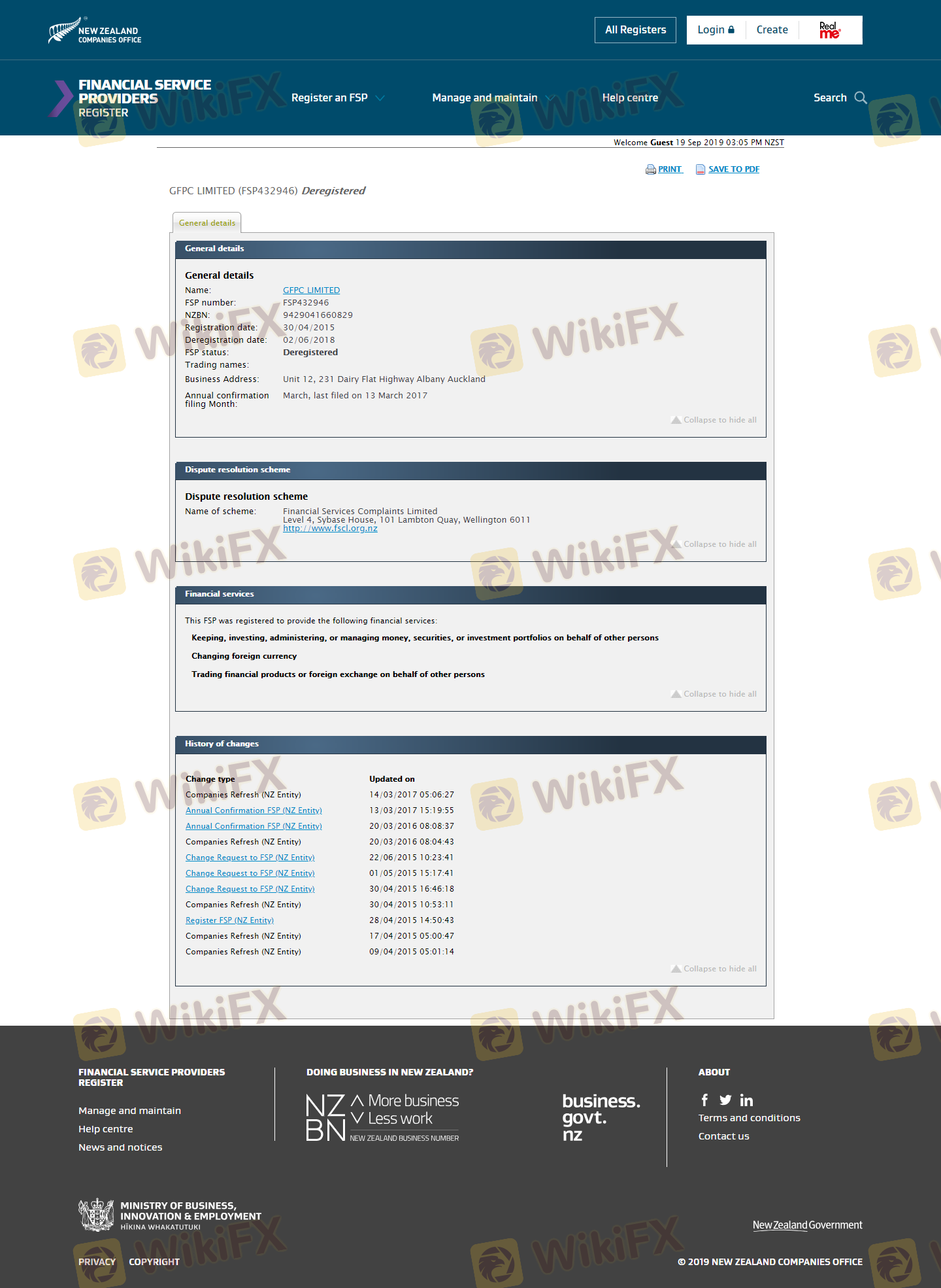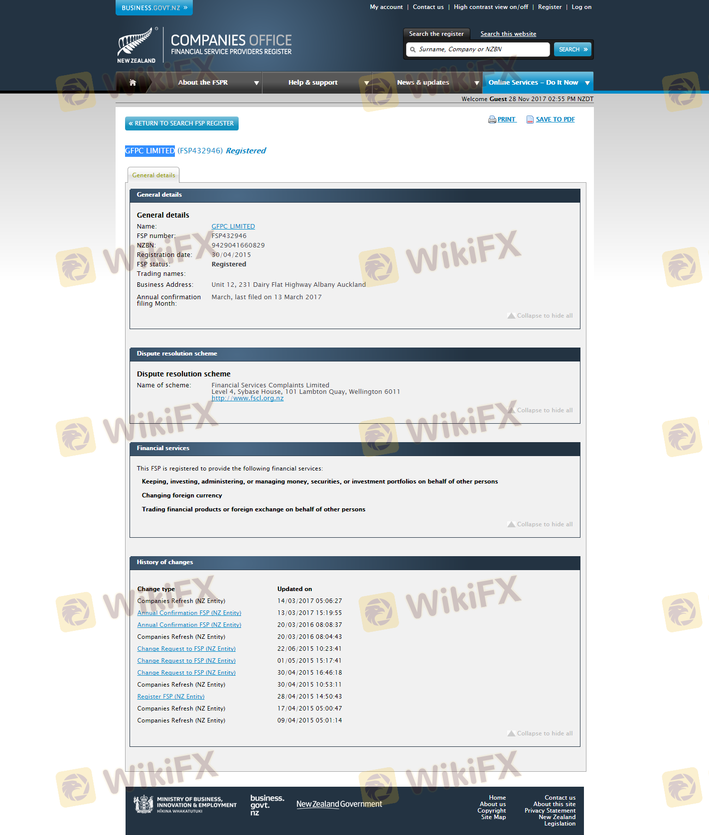 เกี่ยวกับความถูกต้องตามกฎหมายของโบรกเกอร์ฟอเร็กซ์ GFPC FOREX ทางบริษัทได้มีการจัดเตรียม นิวซีแลนด์ FSPR และ (ยังมีการสำรวจภาคสนามเกี่ยวกับความปลอดภัย)