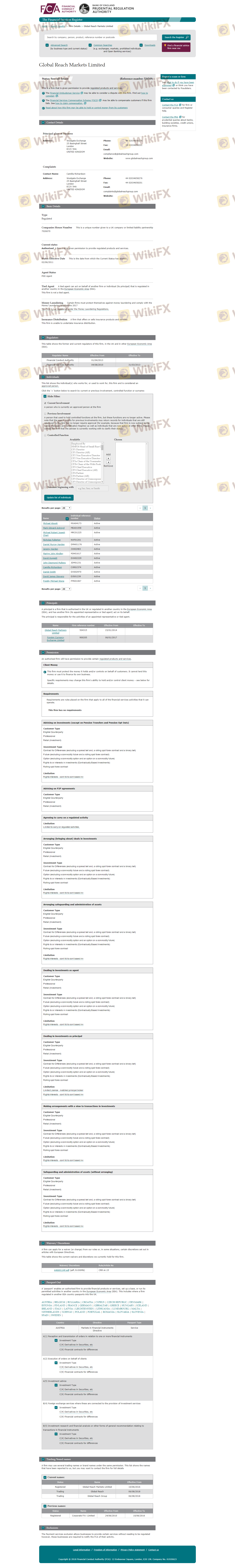 เกี่ยวกับความถูกต้องตามกฎหมายของโบรกเกอร์ฟอเร็กซ์ Global Reach ทางบริษัทได้มีการจัดเตรียม สหราชอาณาจักร FCA และ (ยังมีการสำรวจภาคสนามเกี่ยวกับความปลอดภัย)