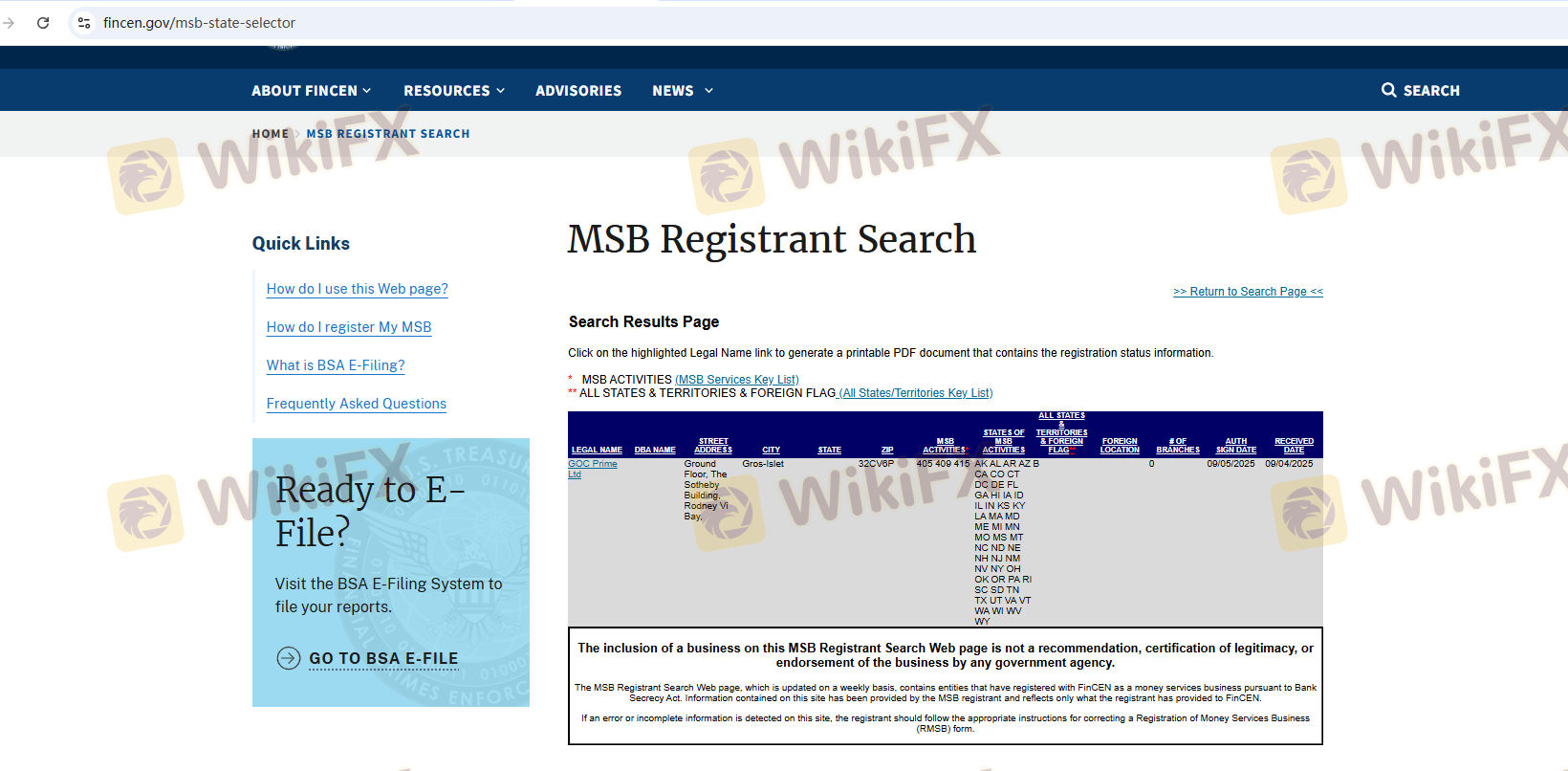 เกี่ยวกับความถูกต้องตามกฎหมายของโบรกเกอร์ฟอเร็กซ์ GOC Prime ทางบริษัทได้มีการจัดเตรียม สหรัฐอเมริกา FinCEN และ