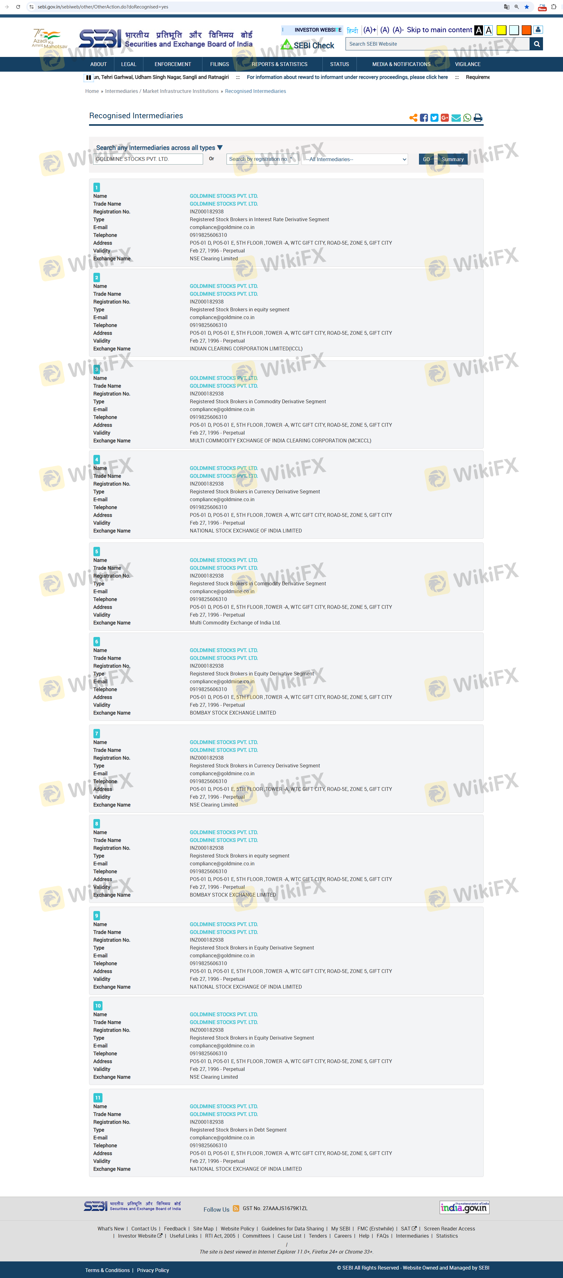 เกี่ยวกับความถูกต้องตามกฎหมายของโบรกเกอร์ฟอเร็กซ์ GOLDMINE ทางบริษัทได้มีการจัดเตรียม อินเดีย SEBI และ
