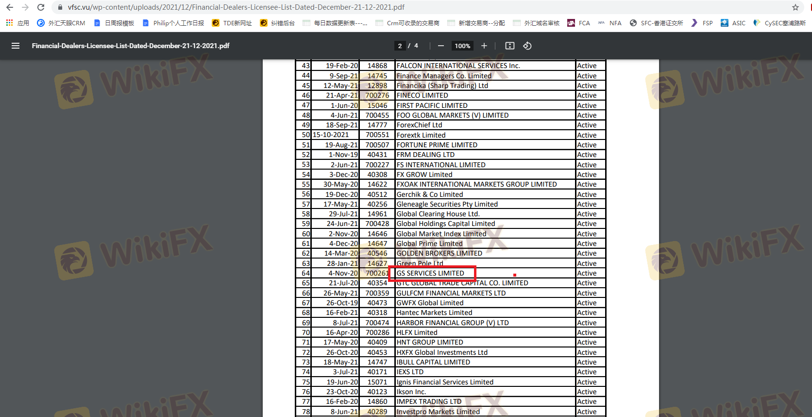 สถานะการกำกับดูแลของโบรกเกอร์ฟอเร็กซ์เป็นปัจจัยสำคัญในการกำหนดความปลอดภัยและความถูกต้องตามกฎหมาย GS Forex อ้างว่าอยู่ภายใต้การกำกับดูแลของคณะกรรมการบริการทางการเงินวานูอาตู (VFSC) อย่างไรก็ตาม มีข้อกังวลสำคัญเกี่ยวกับความถูกต้องของข้ออ้างนี้ เนื่องจาก GS Forex ถูกตั้งค่าสถานะเป็นบริษัท "โคลนที่น่าสงสัย" การกำหนดนี้ชี้ให้เห็นว่า GS Forex อาจกำลังแสดงตัวเป็นองค์กรที่มีใบอนุญาตอย่างเท็จ โดยอาจใช้รายละเอียดของบริษัทที่ได้รับการกำกับดูแลอย่างถูกกฎหมายเพื่อสร้างความน่าเชื่อถือ