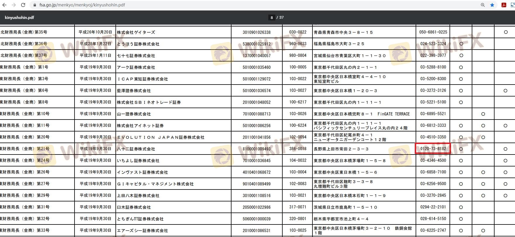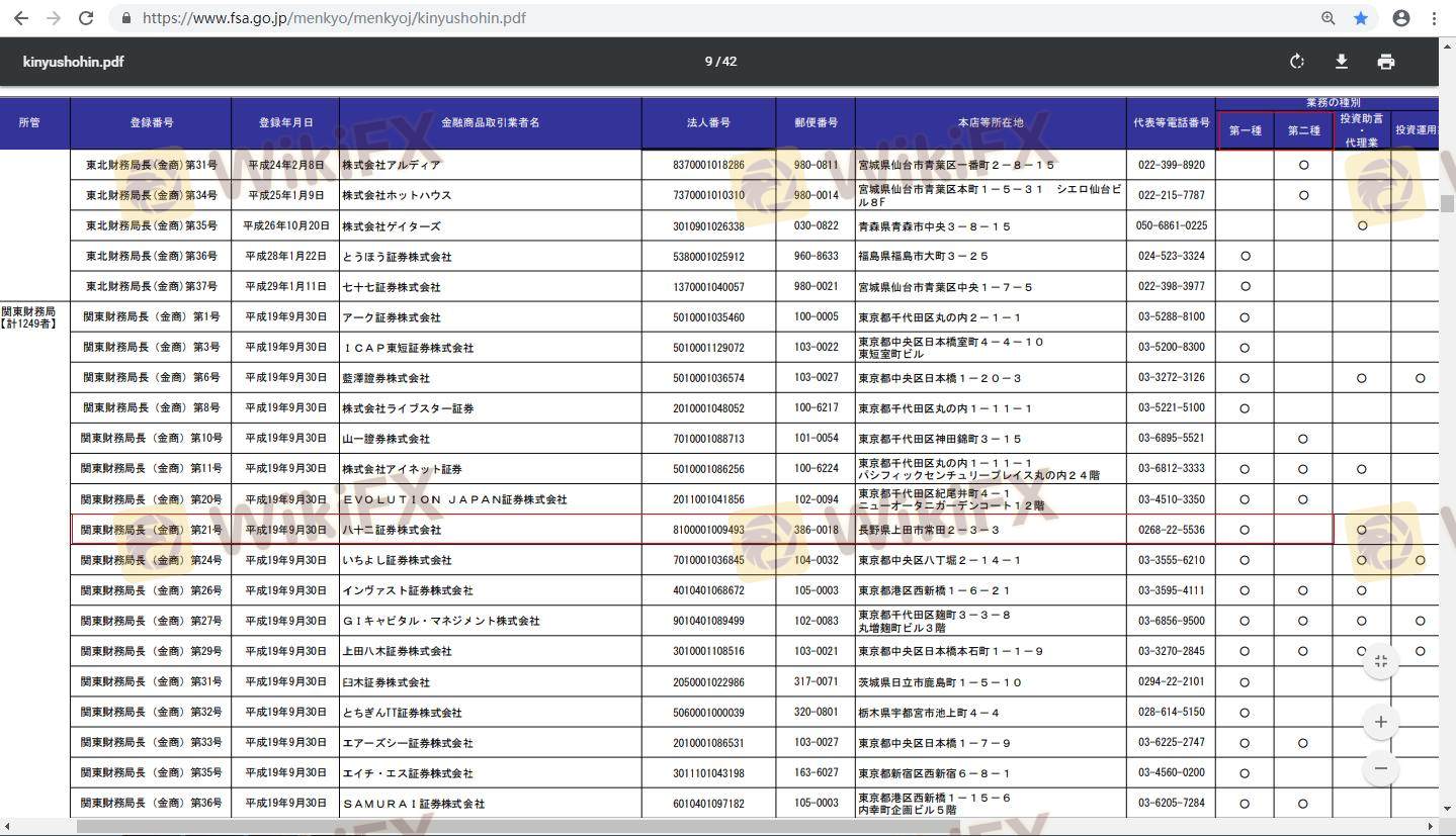 เกี่ยวกับความถูกต้องตามกฎหมายของโบรกเกอร์ฟอเร็กซ์ HACHIJUNI ทางบริษัทได้มีการจัดเตรียม ประเทศญี่ปุ่น FSA และ