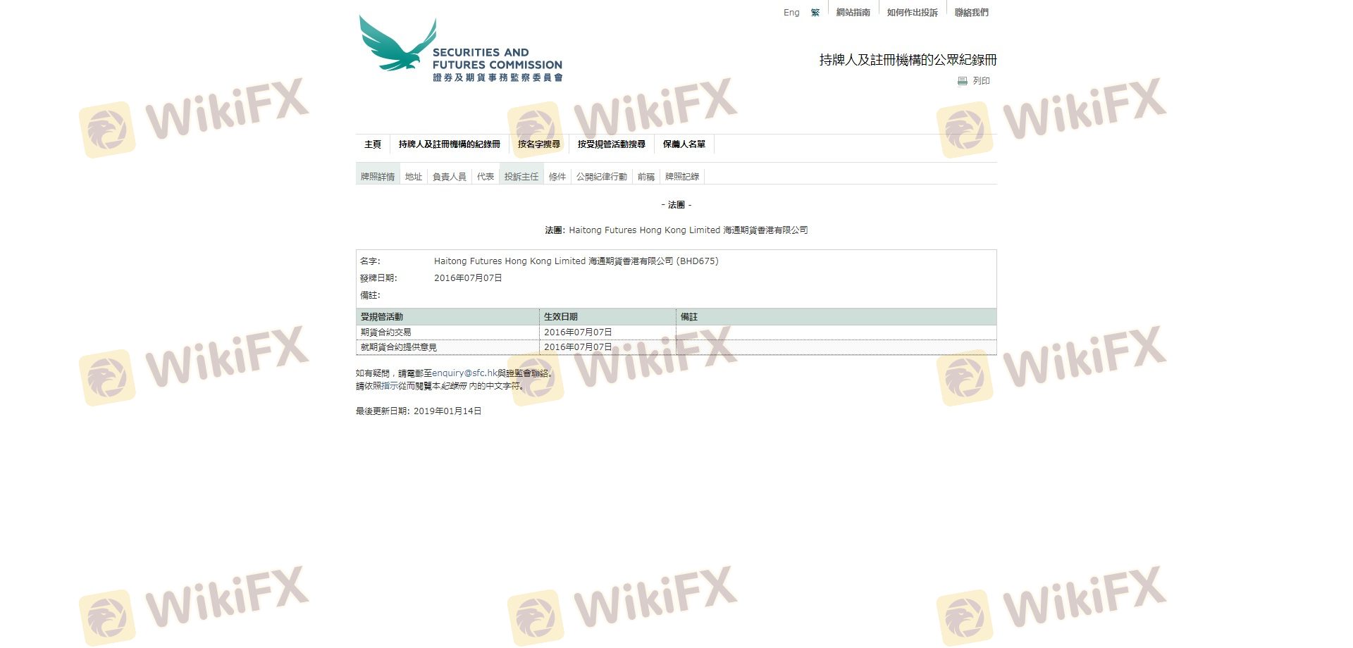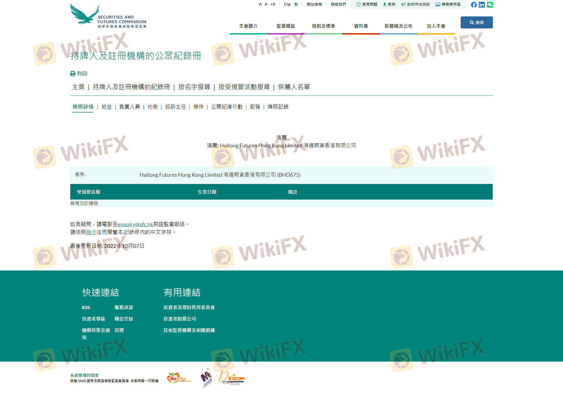 เกี่ยวกับความถูกต้องตามกฎหมายของโบรกเกอร์ฟอเร็กซ์ Haitong Futures ทางบริษัทได้มีการจัดเตรียม ฮ่องกง SFC และ (ยังมีการสำรวจภาคสนามเกี่ยวกับความปลอดภัย)