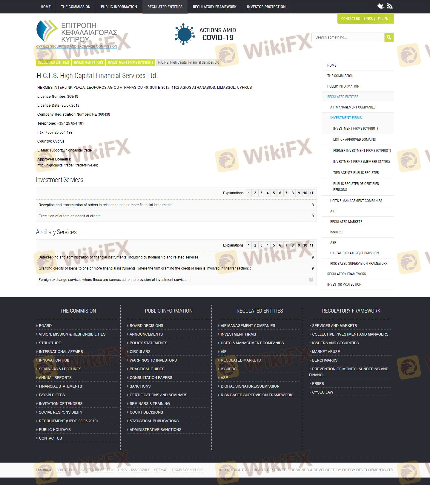 เกี่ยวกับความถูกต้องตามกฎหมายของโบรกเกอร์ฟอเร็กซ์ HighCapital ทางบริษัทได้มีการจัดเตรียม ประเทศไซปรัส CYSEC และ (ยังมีการสำรวจภาคสนามเกี่ยวกับความปลอดภัย)