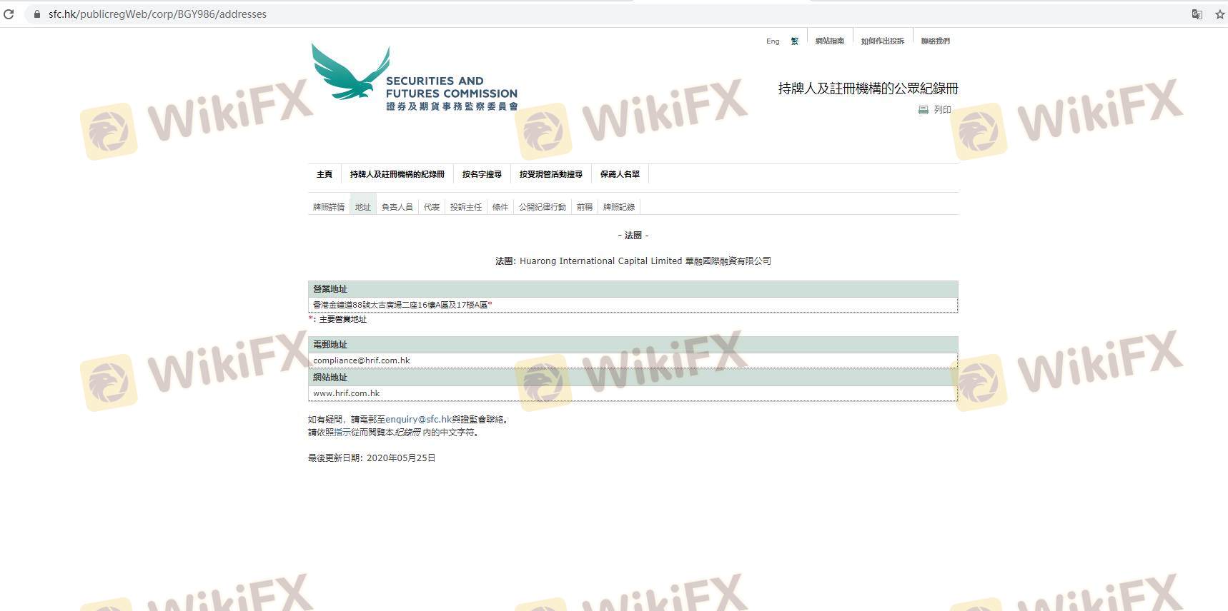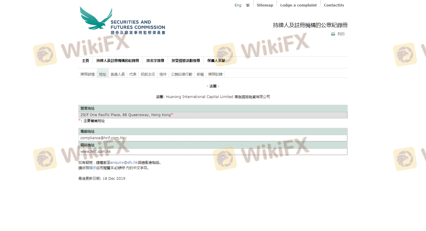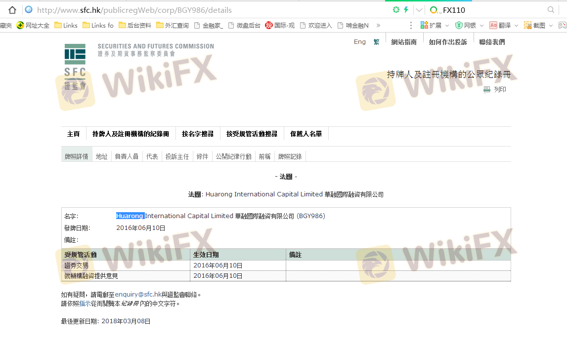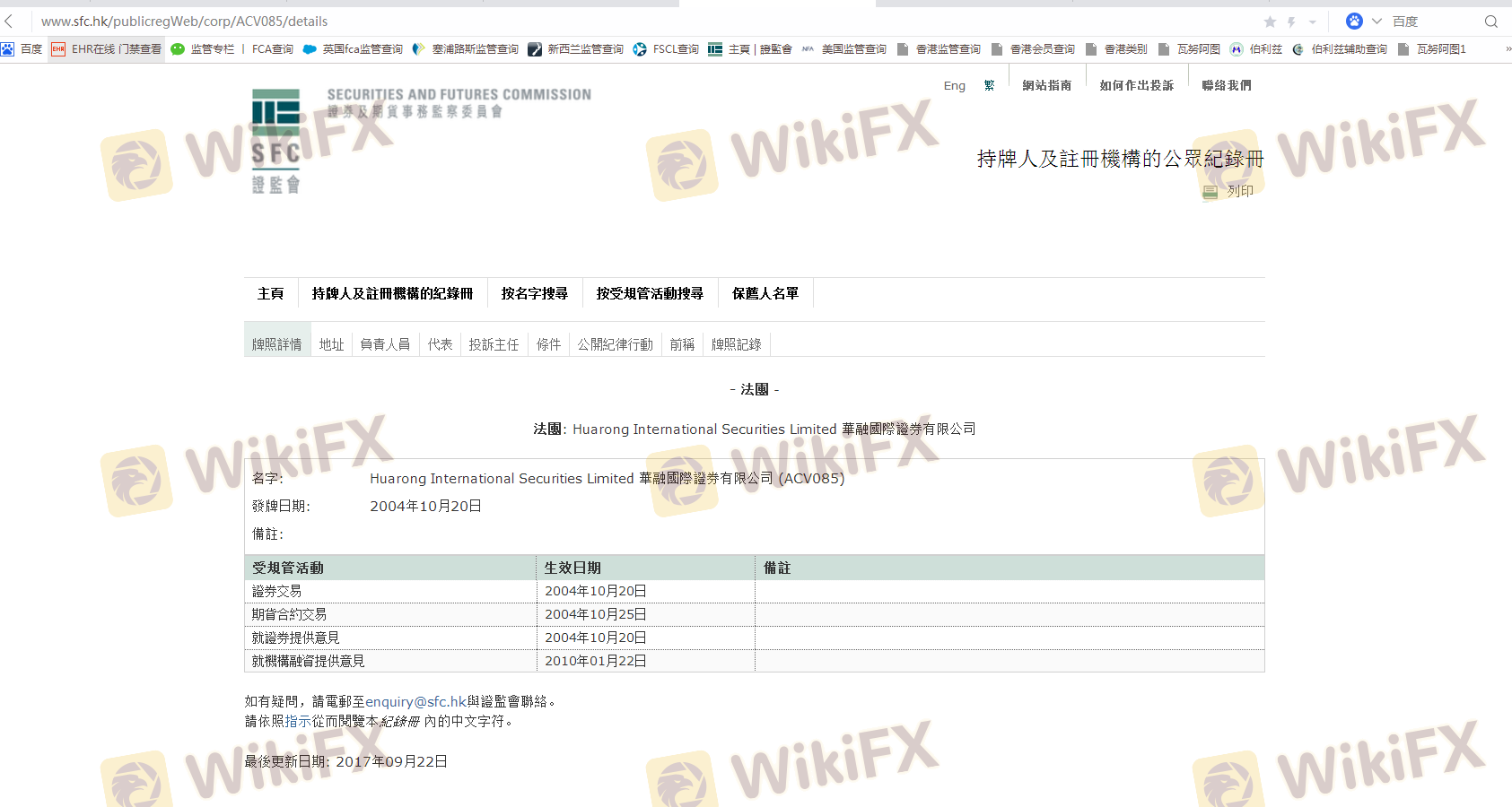 เกี่ยวกับความถูกต้องตามกฎหมายของโบรกเกอร์ฟอเร็กซ์ Huarong ทางบริษัทได้มีการจัดเตรียม ฮ่องกง SFC, ฮ่องกง SFC และ (ยังมีการสำรวจภาคสนามเกี่ยวกับความปลอดภัย)