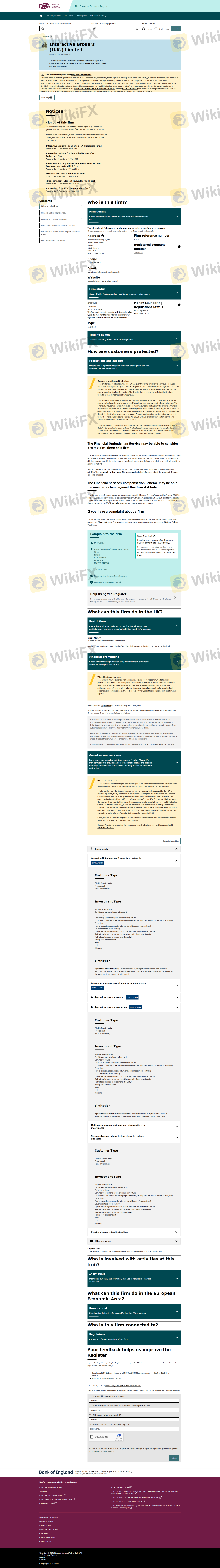 กรอบการกำกับดูแลที่ล้อมรอบบริษัทนายหน้าเป็นปัจจัยสำคัญในการกำหนดความชอบธรรมและความปลอดภัยของเงินทุนลูกค้า Interactive Brokers อยู่ภายใต้การกำกับดูแลของหน่วยงานทางการเงินระดับสูงหลายแห่ง ซึ่งเพิ่มชั้นของความน่าเชื่อถือให้กับการดำเนินงานของบริษัท ตารางต่อไปนี้สรุปข้อมูลการกำกับดูแลหลักสำหรับ Interactive Brokers:
