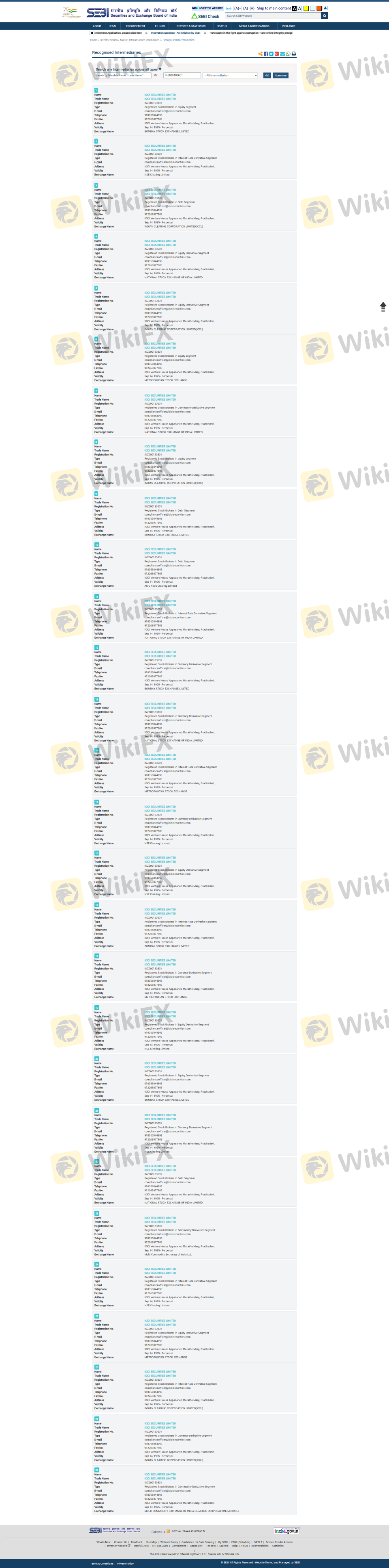 เกี่ยวกับความถูกต้องตามกฎหมายของโบรกเกอร์ฟอเร็กซ์ ICICI Securities ทางบริษัทได้มีการจัดเตรียม อินเดีย SEBI และ