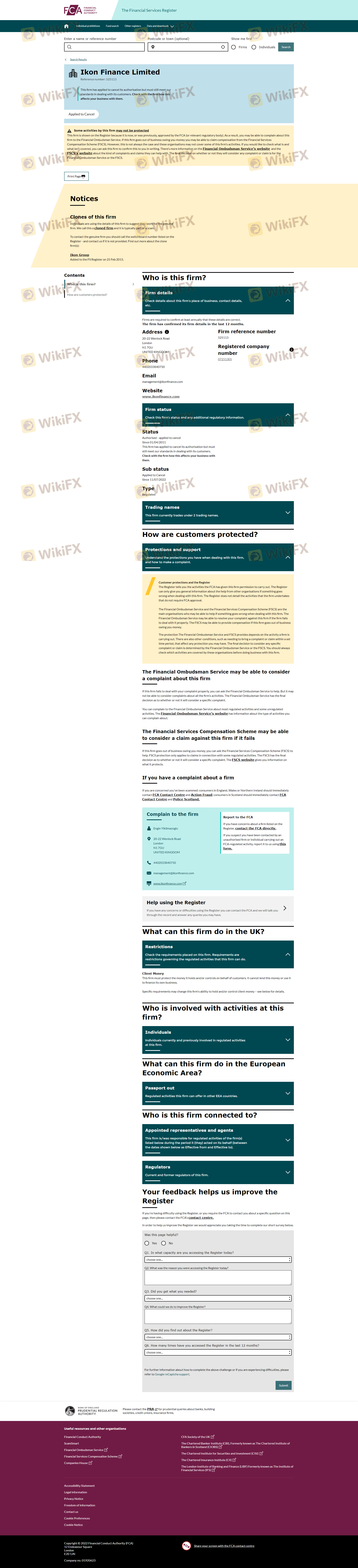 เกี่ยวกับความถูกต้องตามกฎหมายของโบรกเกอร์ฟอเร็กซ์ IKON ทางบริษัทได้มีการจัดเตรียม สหราชอาณาจักร FCA และ (ยังมีการสำรวจภาคสนามเกี่ยวกับความปลอดภัย)