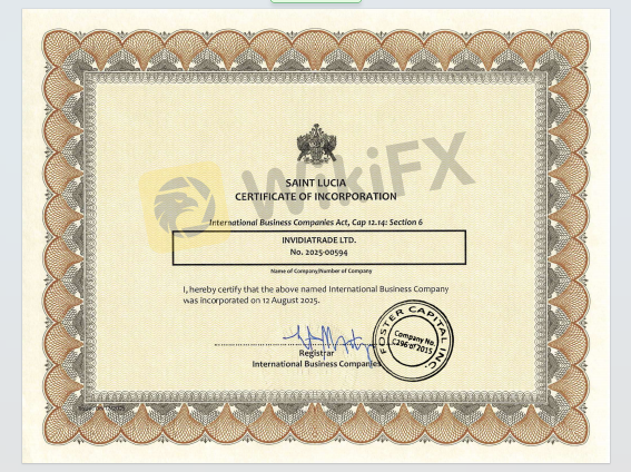เกี่ยวกับความถูกต้องตามกฎหมายของโบรกเกอร์ฟอเร็กซ์ Invidiatrade ทางบริษัทได้มีการจัดเตรียม เซนต์ลูเซีย FSRA และ