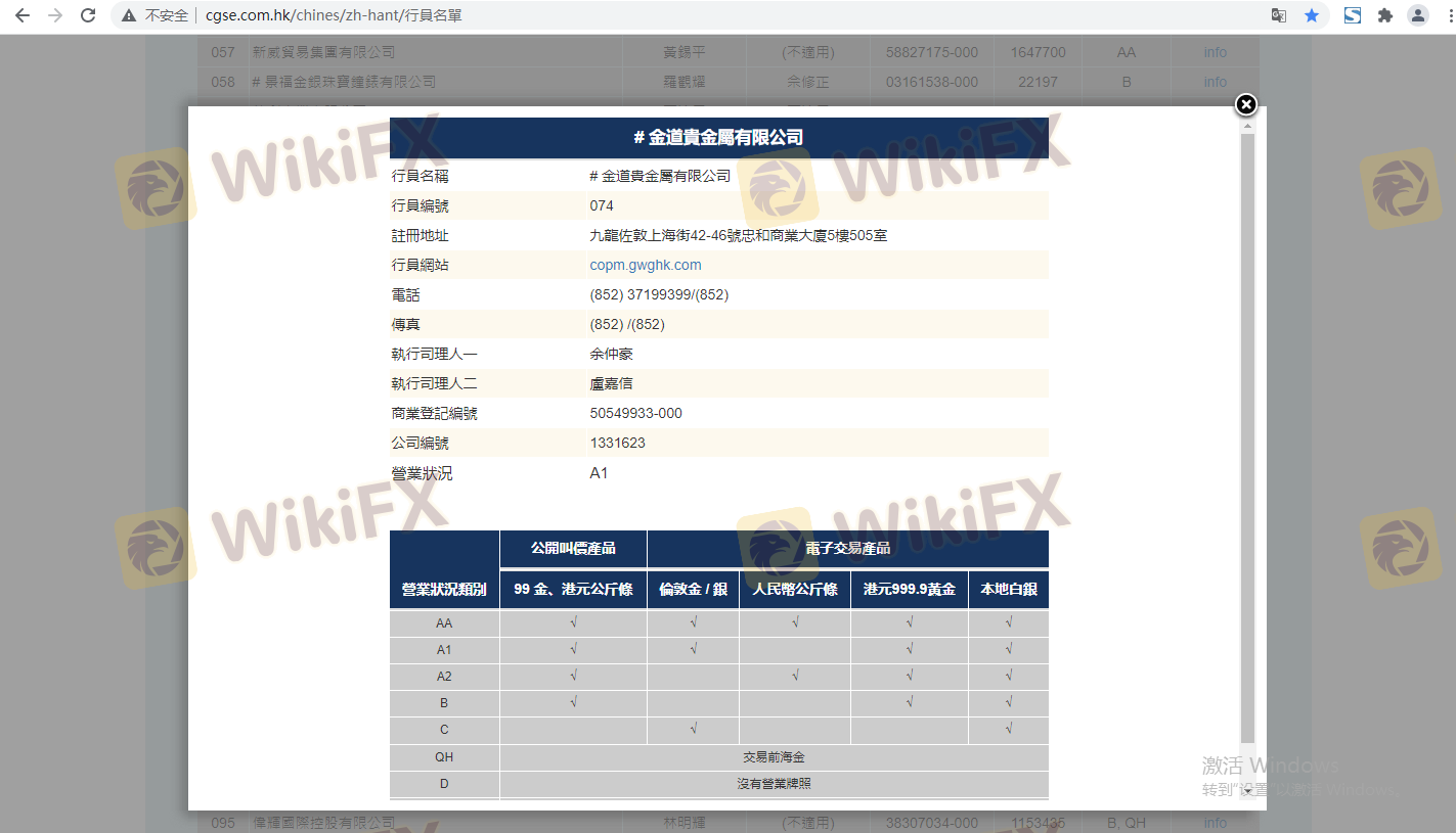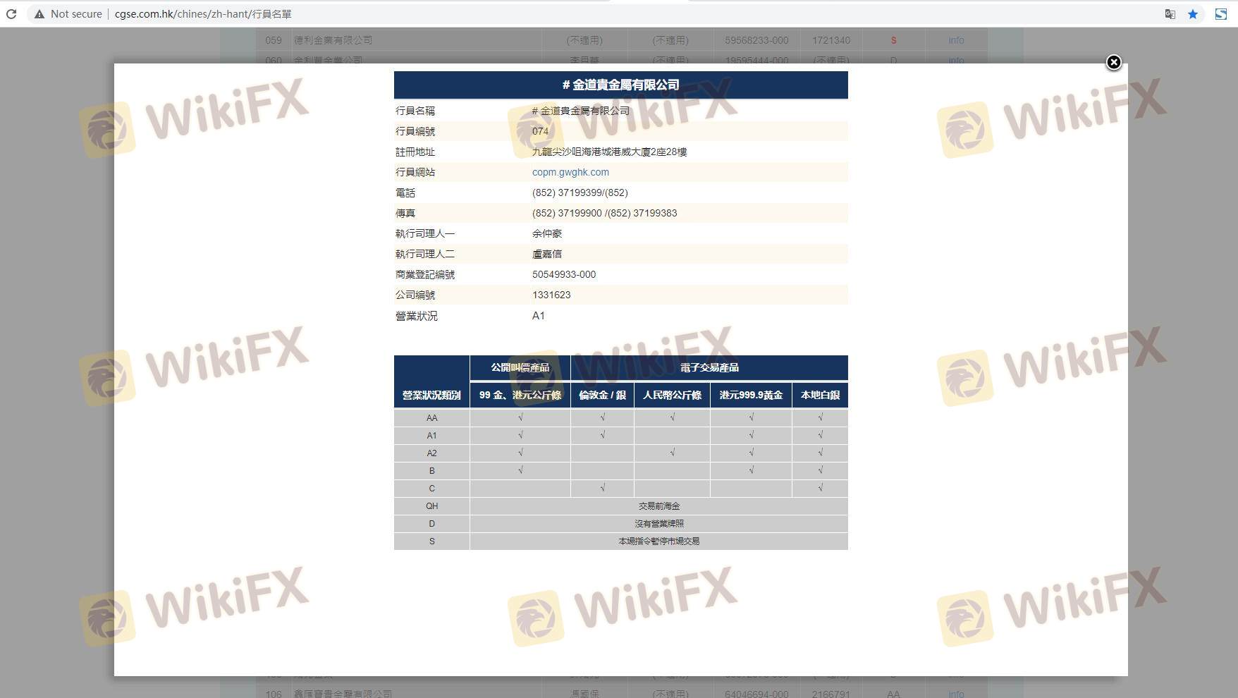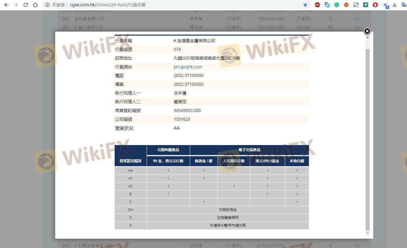 | สมาคมการค้าทองคำและเงินจีน | ใบอนุญาตหมายเลข 074 | ฮ่องกง | ไม่ได้ต่ออายุ |