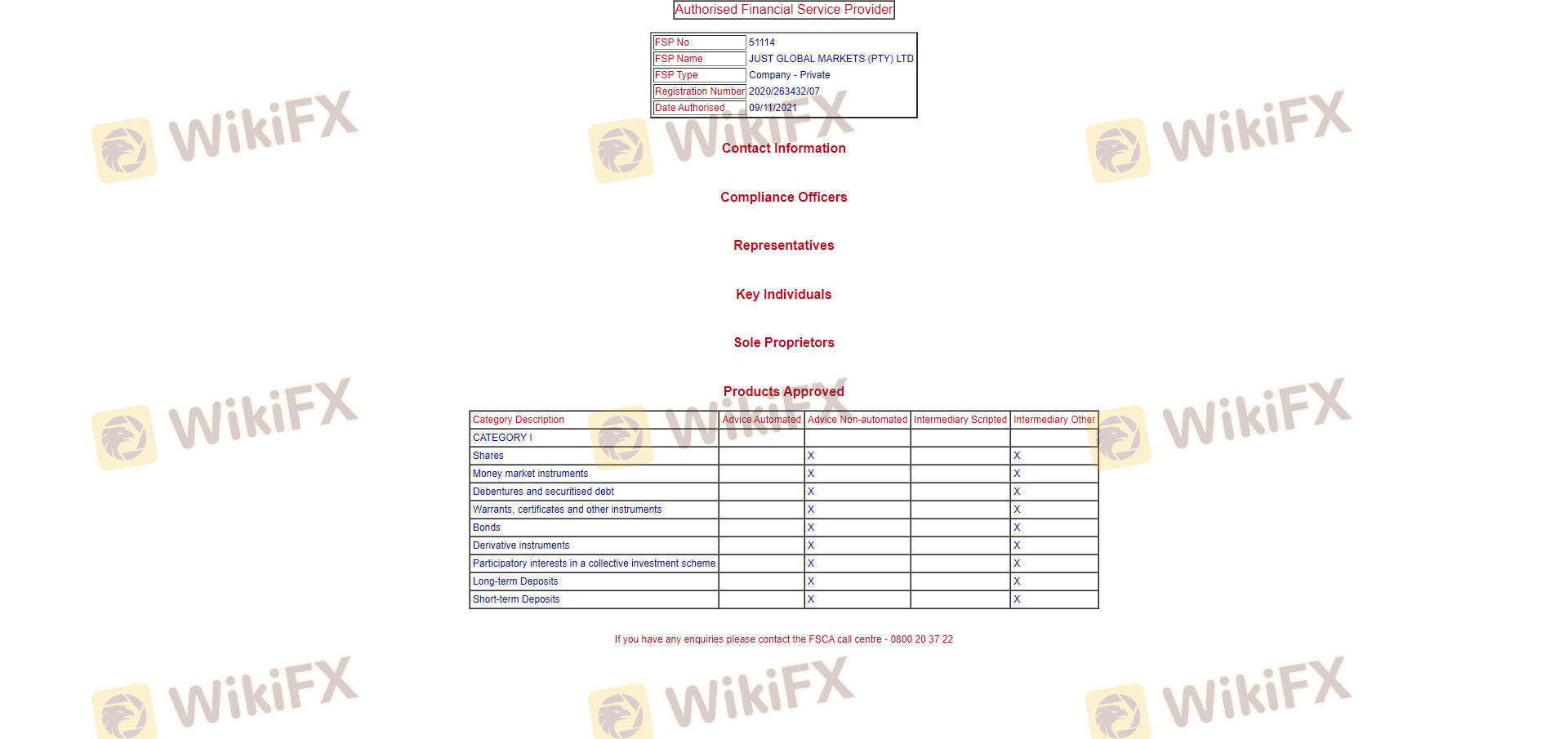 | หน่วยงานกำกับดูแลภาคการเงิน (FSCA) | 51114 | แอฟริกาใต้ | ยืนยันแล้ว |