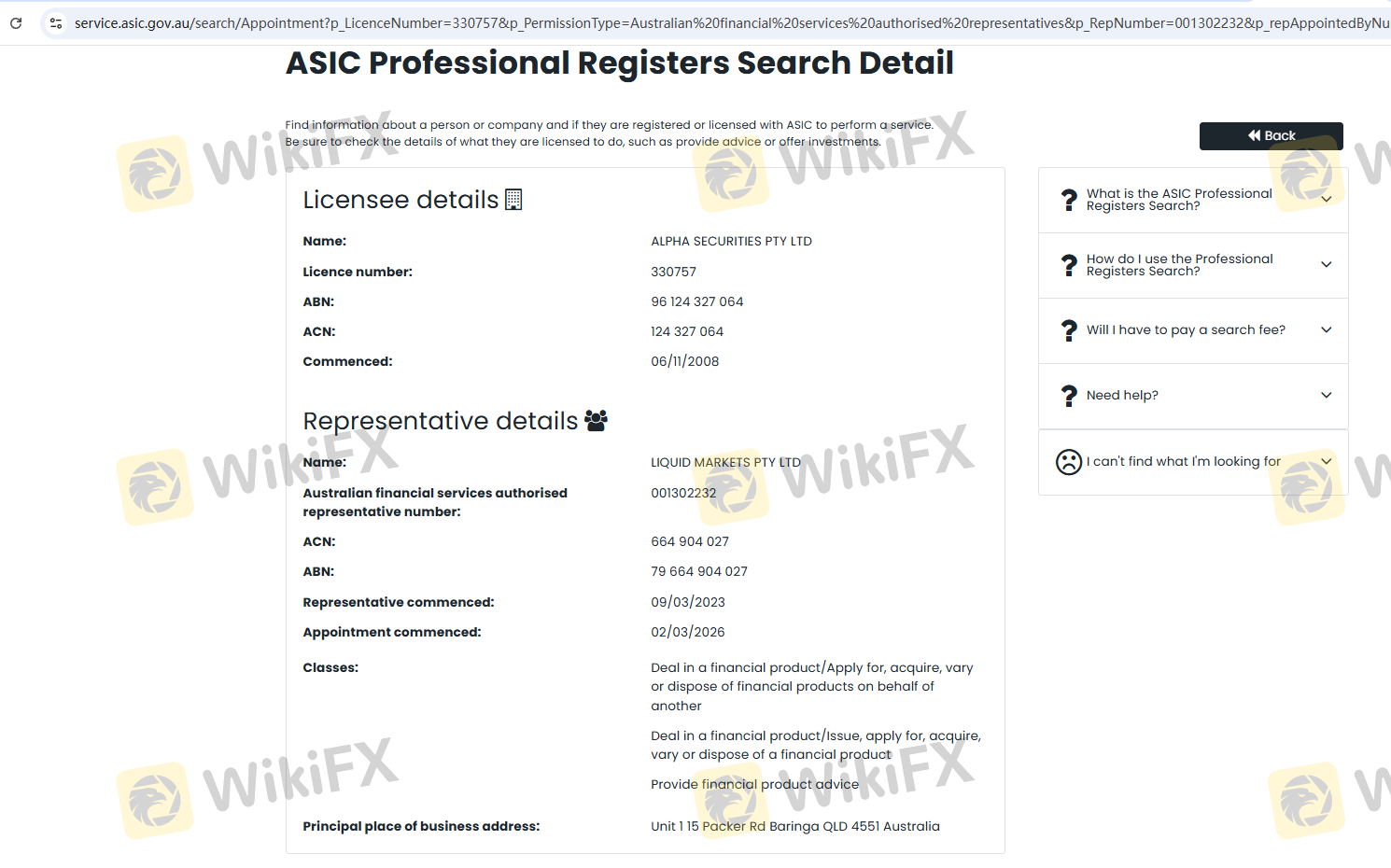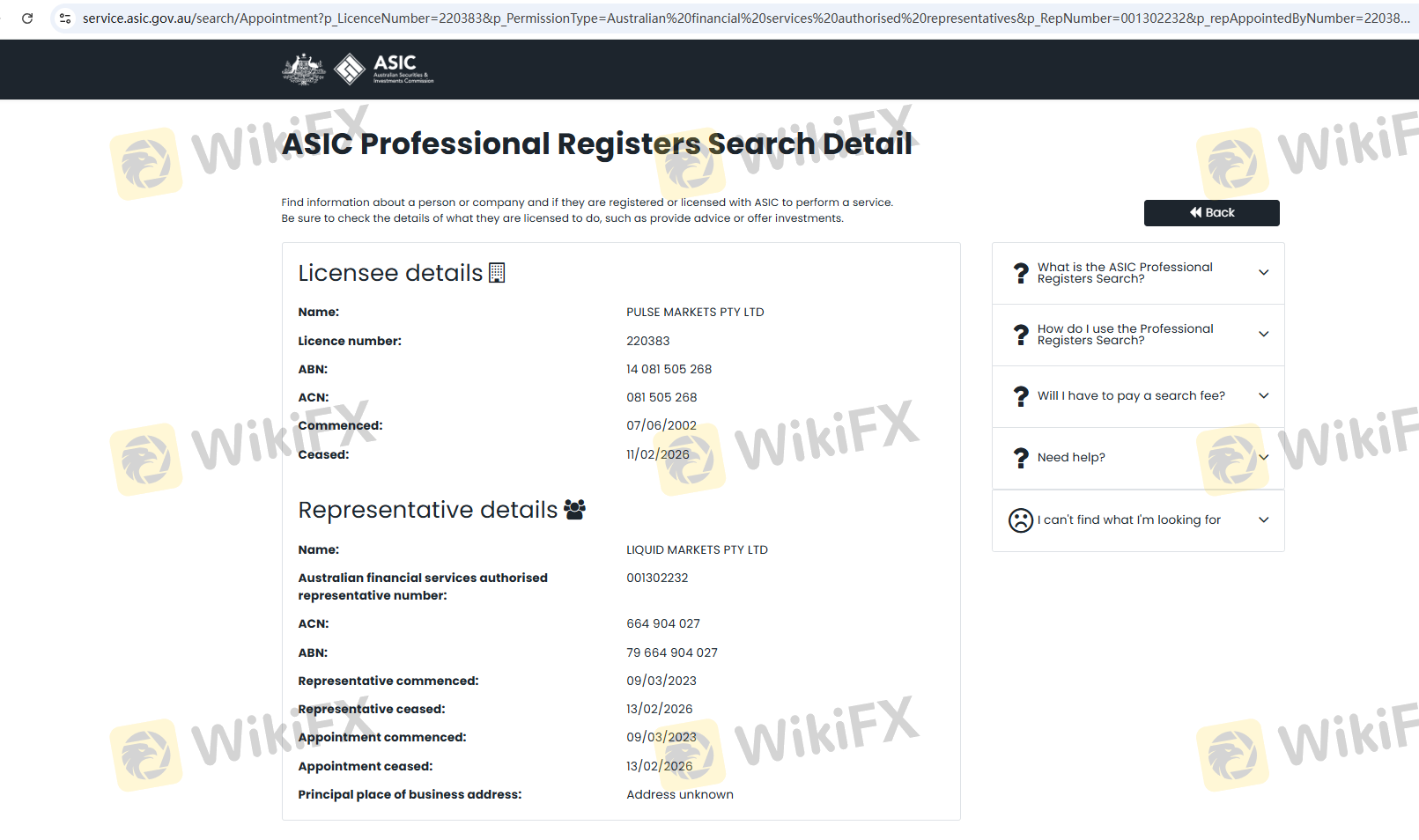 | ASIC | 001302232 | ออสเตรเลีย | ได้รับการยืนยันแล้ว |