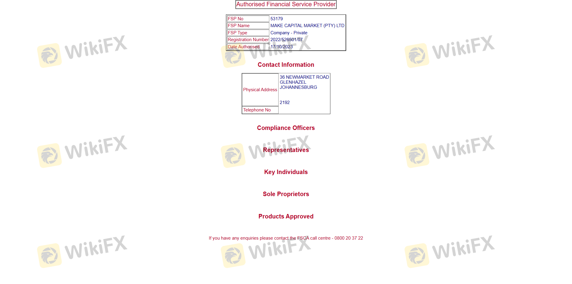 เกี่ยวกับความถูกต้องตามกฎหมายของโบรกเกอร์ฟอเร็กซ์ MAKE CAPITAL ทางบริษัทได้มีการจัดเตรียม แอฟริกาใต้ FSCA และ