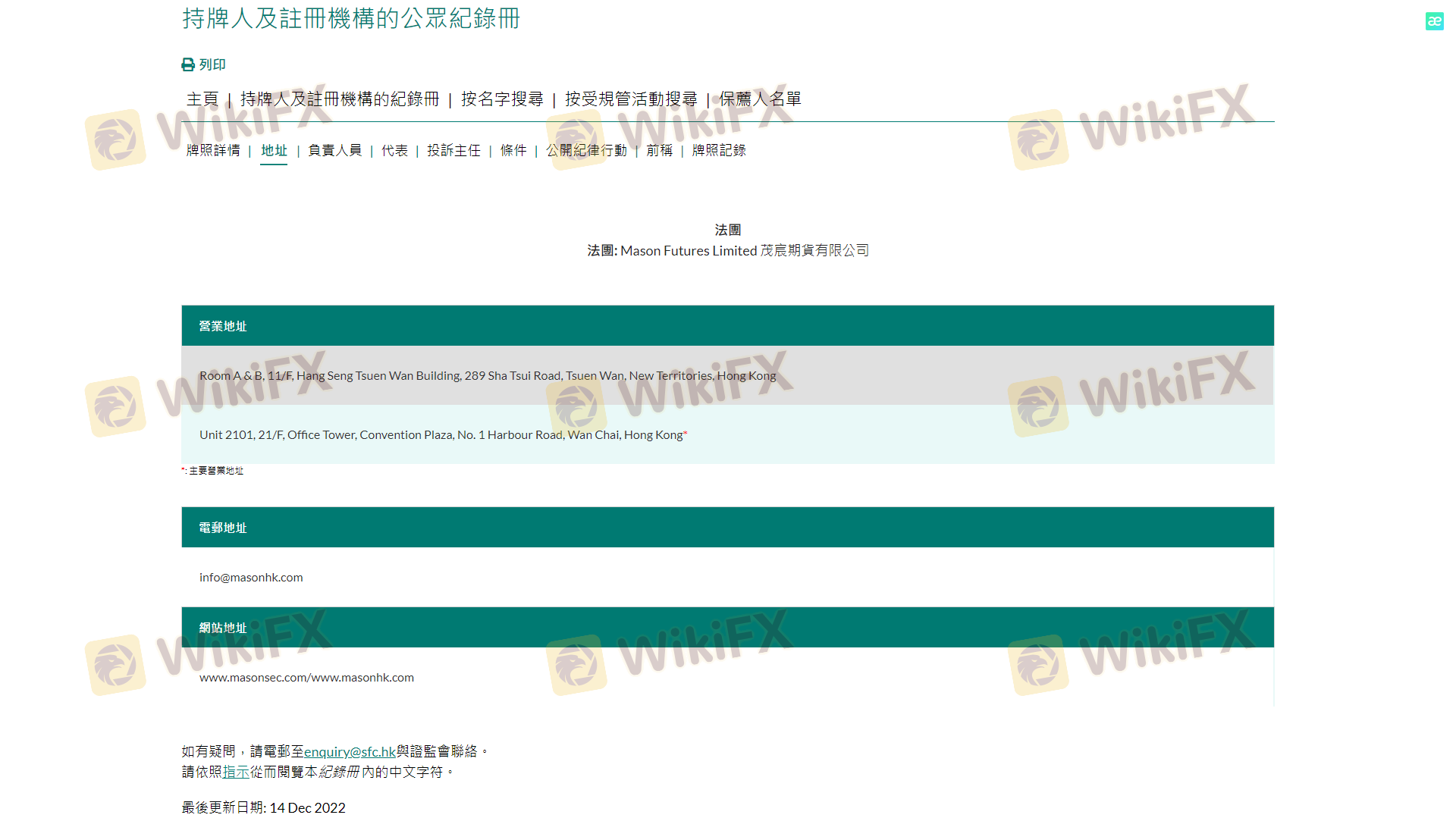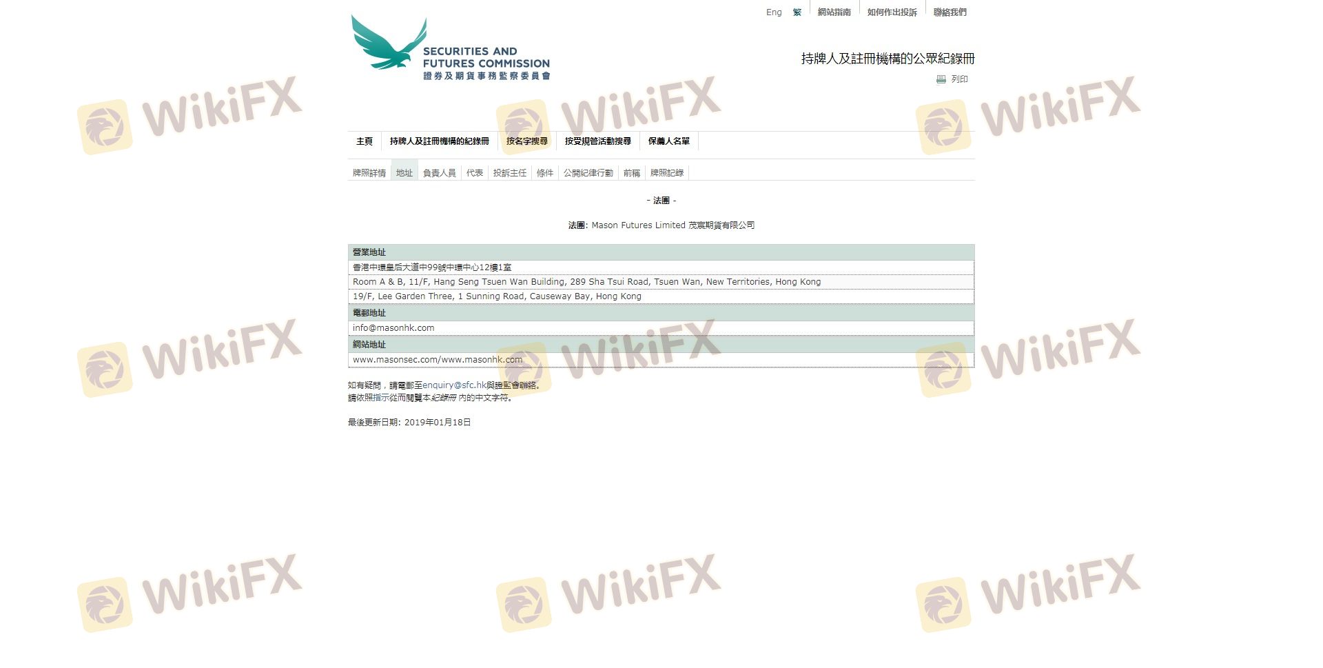 เกี่ยวกับความถูกต้องตามกฎหมายของโบรกเกอร์ฟอเร็กซ์ MASON GROUP ทางบริษัทได้มีการจัดเตรียม ฮ่องกง SFC และ (ยังมีการสำรวจภาคสนามเกี่ยวกับความปลอดภัย)