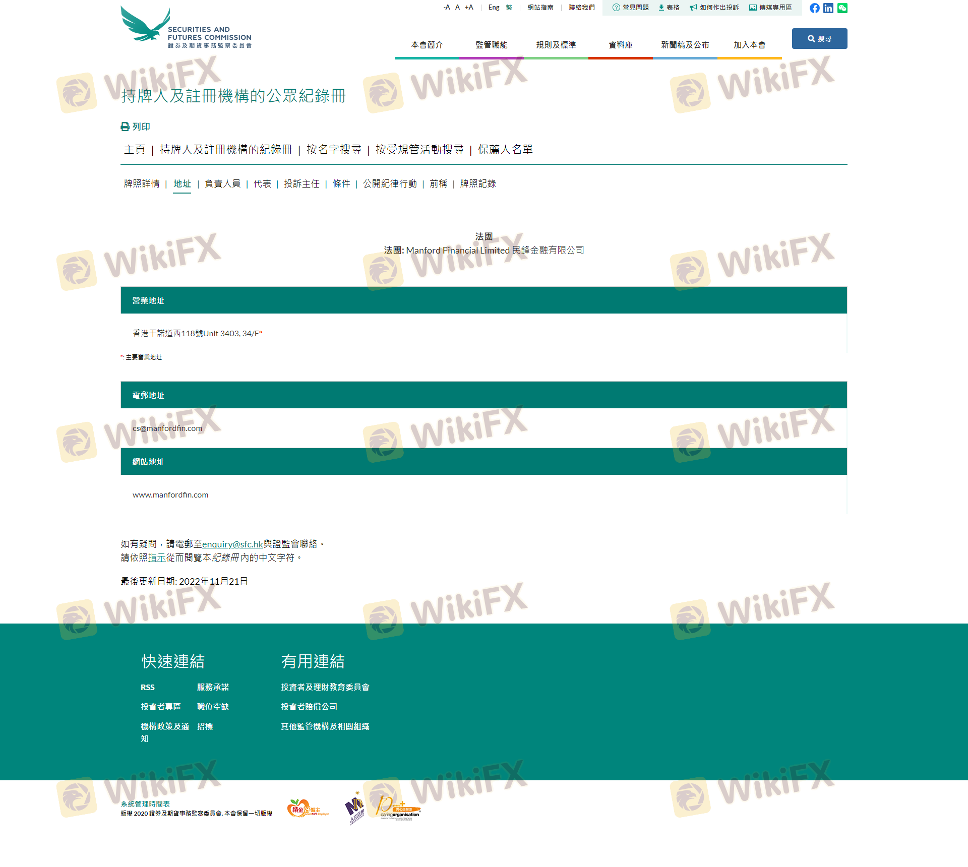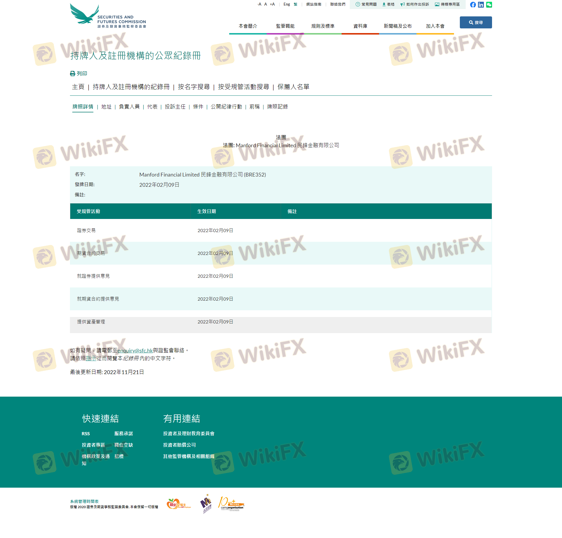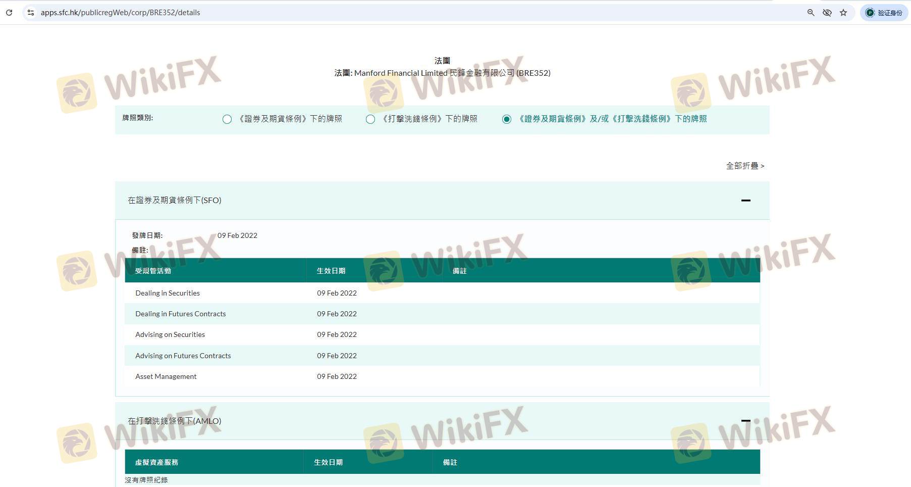เกี่ยวกับความถูกต้องตามกฎหมายของโบรกเกอร์ฟอเร็กซ์ Minfeng Finance ทางบริษัทได้มีการจัดเตรียม ฮ่องกง SFC และ