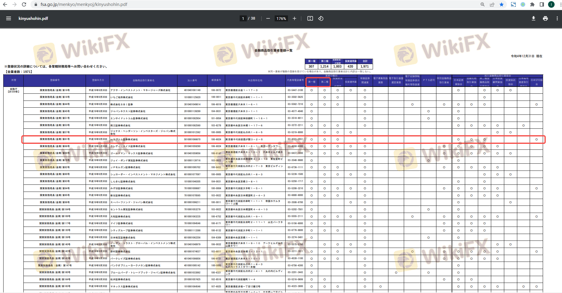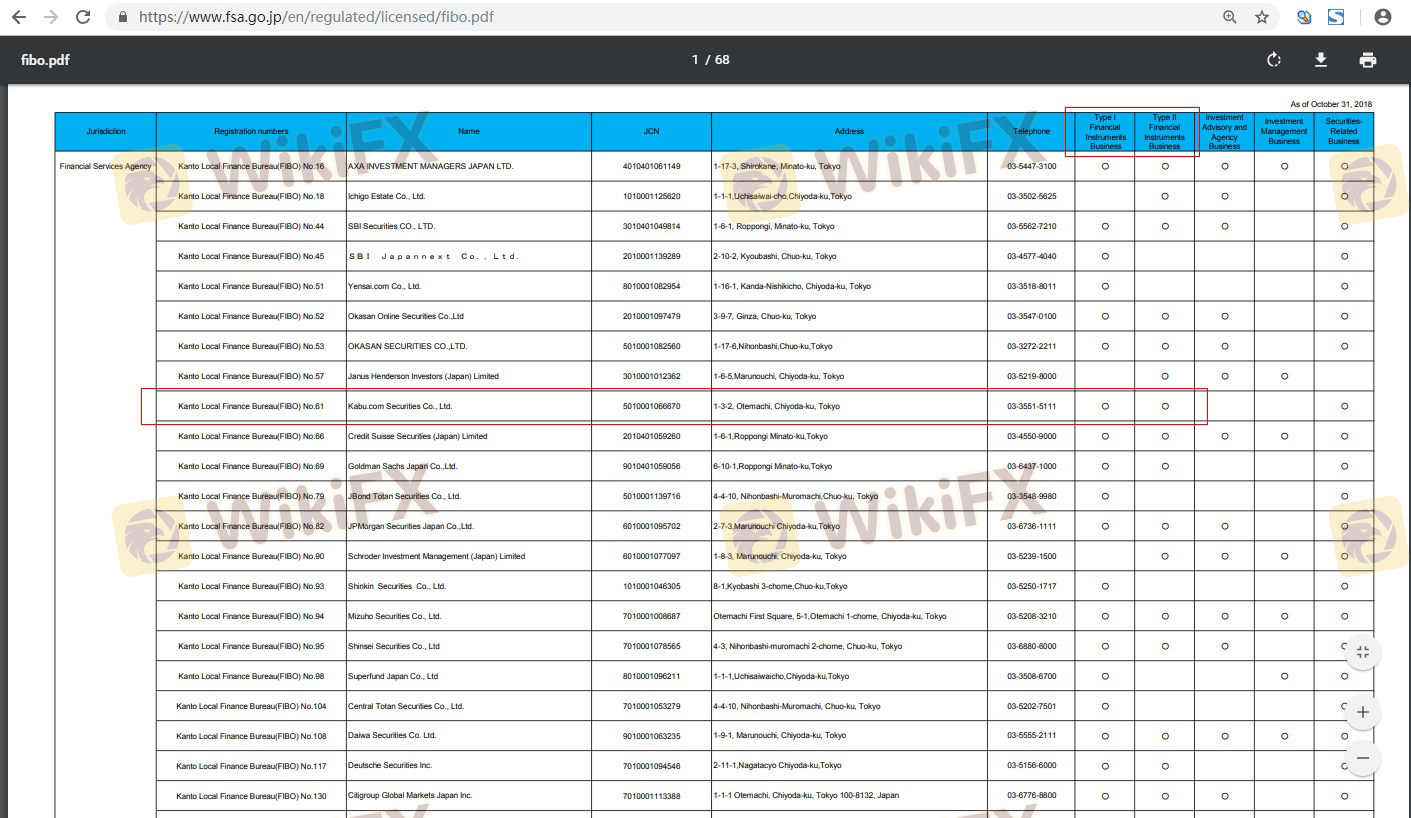 | สำนักงานบริการทางการเงิน (FSA) | สำนักงานการเงินคันโต (ธุรกิจการเงิน) ฉบับที่ 61 | ญี่ปุ่น | ยืนยันแล้ว |