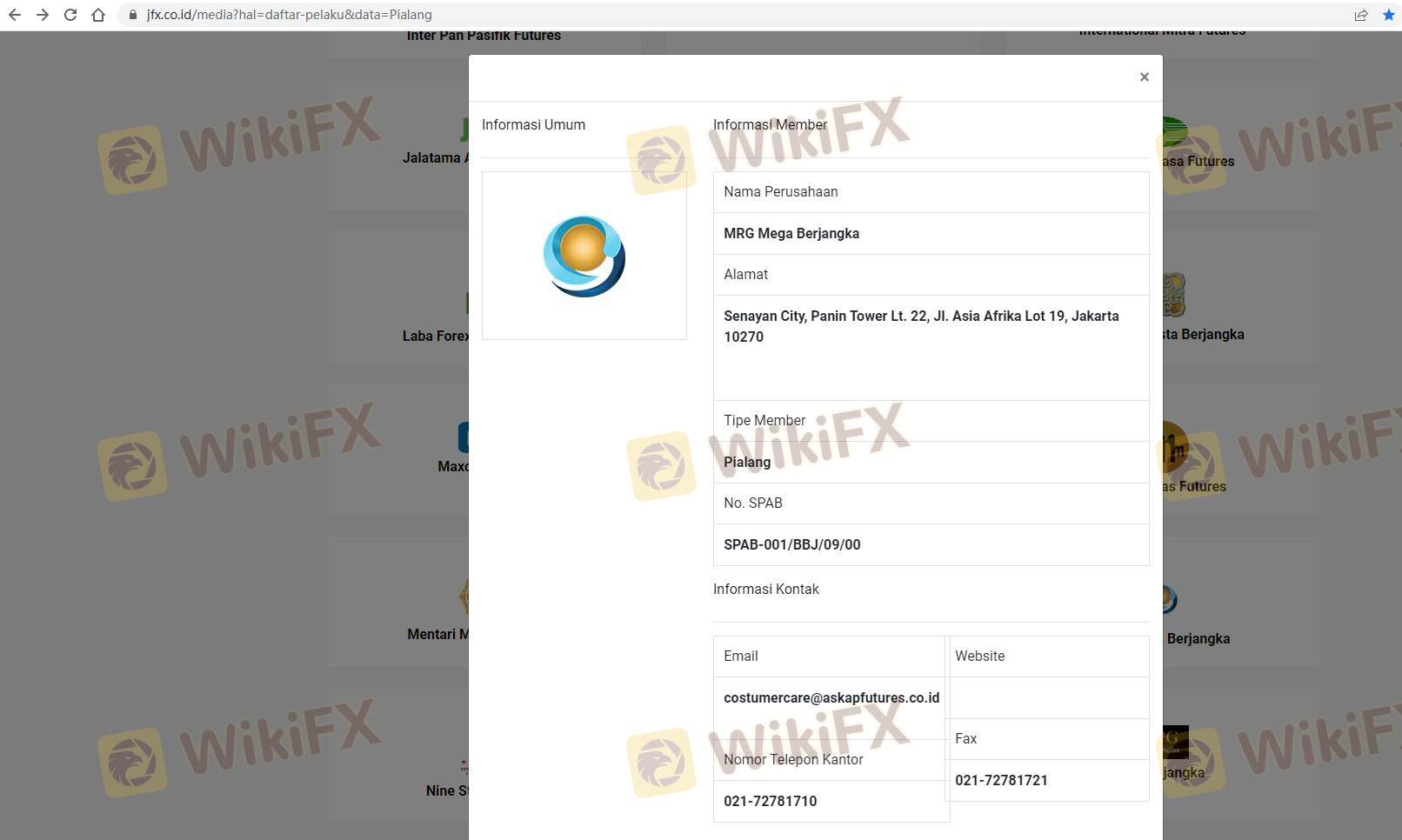 เกี่ยวกับความถูกต้องตามกฎหมายของโบรกเกอร์ฟอเร็กซ์ MRG MEGA BERJANGKA ทางบริษัทได้มีการจัดเตรียม อินโดนีเซีย BAPPEBTI, อินโดนีเซีย JFX และ (ยังมีการสำรวจภาคสนามเกี่ยวกับความปลอดภัย)