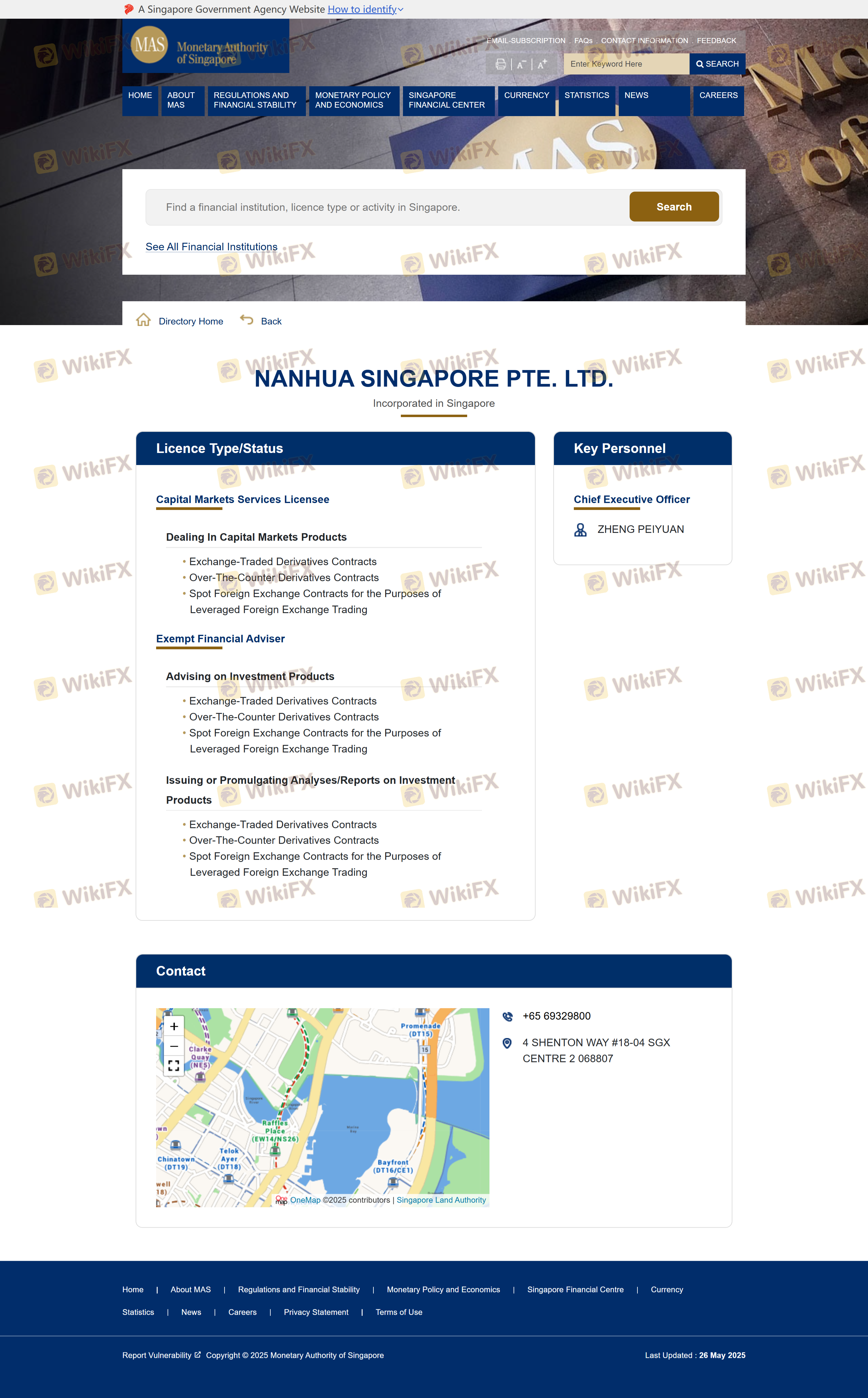 เกี่ยวกับความถูกต้องตามกฎหมายของโบรกเกอร์ฟอเร็กซ์ NANHUA SINGAPORE ทางบริษัทได้มีการจัดเตรียม สิงคโปร์ MAS และ