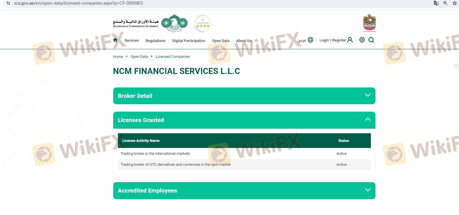 เกี่ยวกับความถูกต้องตามกฎหมายของโบรกเกอร์ฟอเร็กซ์ NCM ทางบริษัทได้มีการจัดเตรียม สหราชอาณาจักร FCA, สหรัฐอาหรับเอมิเรตส์ CMA และ (ยังมีการสำรวจภาคสนามเกี่ยวกับความปลอดภัย)