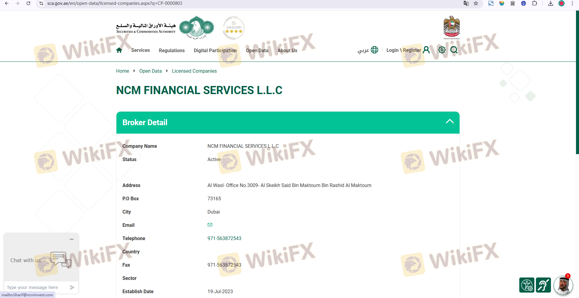 | หน่วยงานกำกับหลักทรัพย์และสินค้าโภคภัณฑ์ (SCA) | 703036 | สหรัฐอาหรับเอมิเรตส์ | ยืนยันแล้ว |