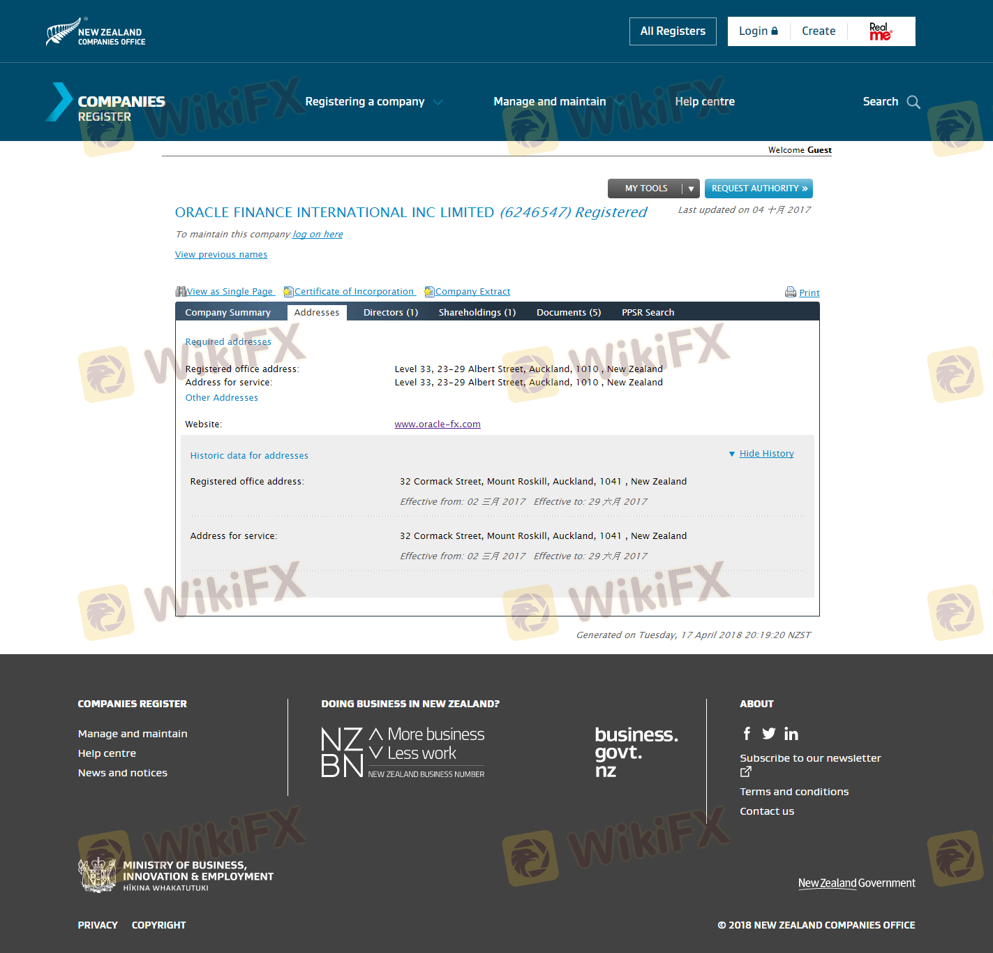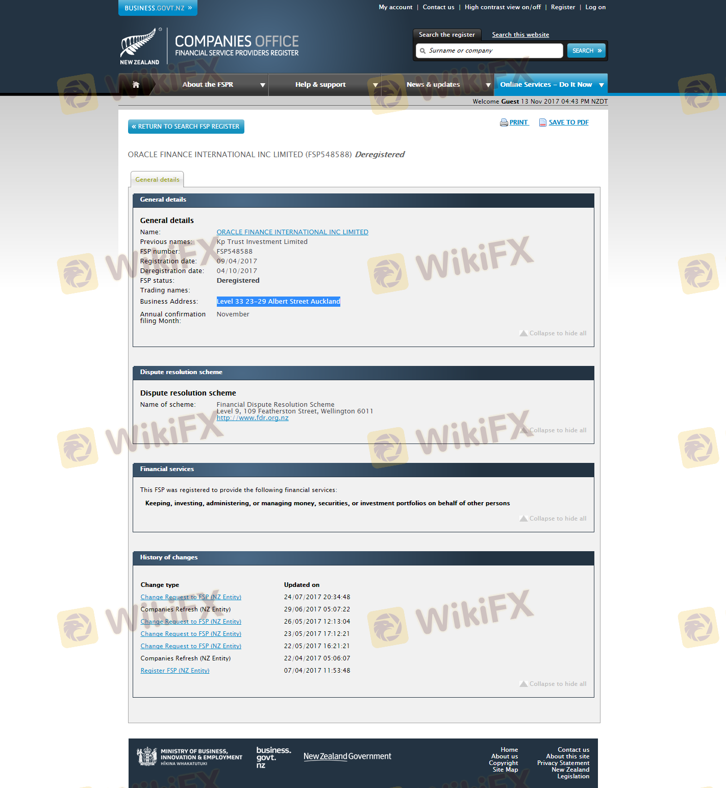 เกี่ยวกับความถูกต้องตามกฎหมายของโบรกเกอร์ฟอเร็กซ์ Oracle FX ทางบริษัทได้มีการจัดเตรียม นิวซีแลนด์ FSPR และ (ยังมีการสำรวจภาคสนามเกี่ยวกับความปลอดภัย)