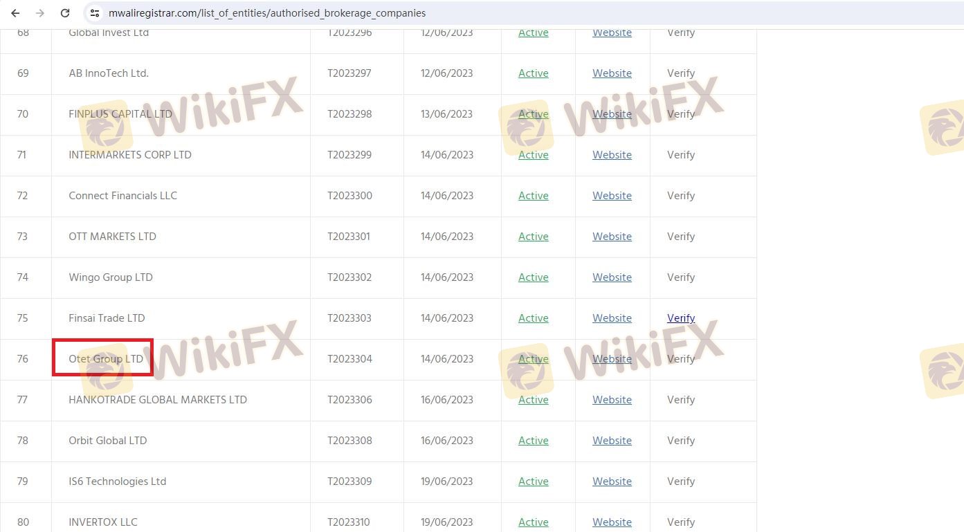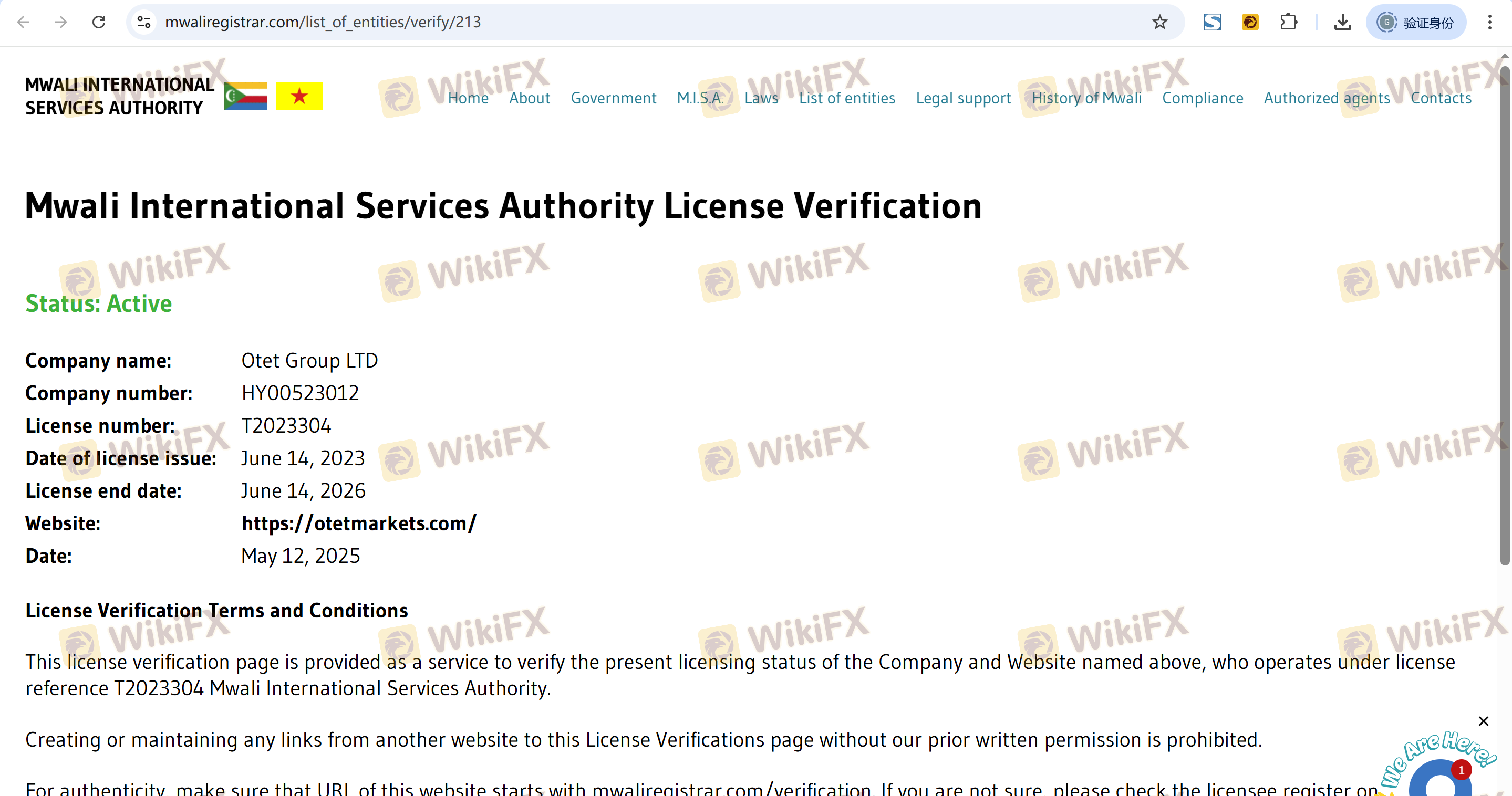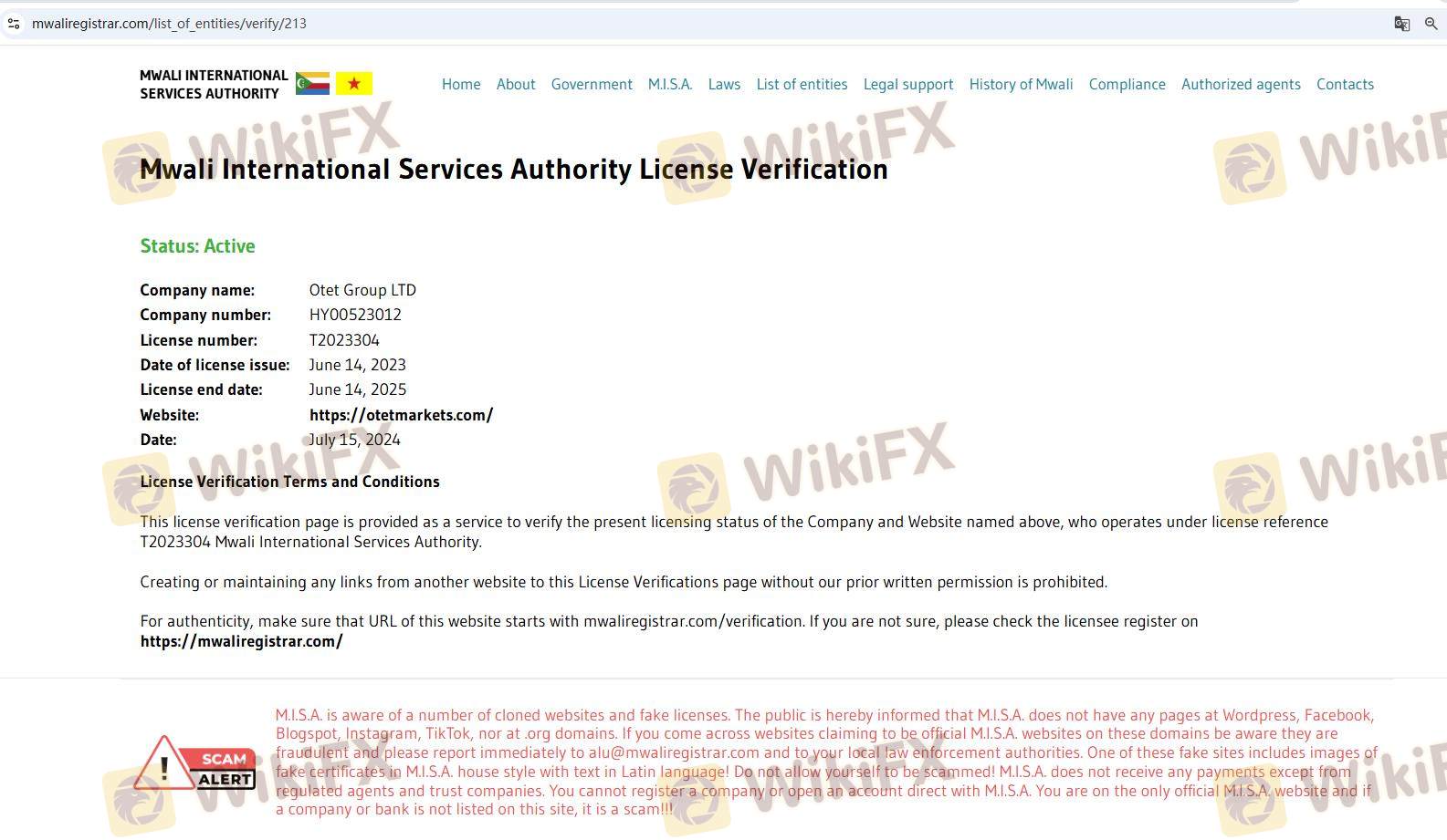 เกี่ยวกับความถูกต้องตามกฎหมายของโบรกเกอร์ฟอเร็กซ์ OtetMarkets ทางบริษัทได้มีการจัดเตรียม คอโมโรส MISA และ (ยังมีการสำรวจภาคสนามเกี่ยวกับความปลอดภัย)