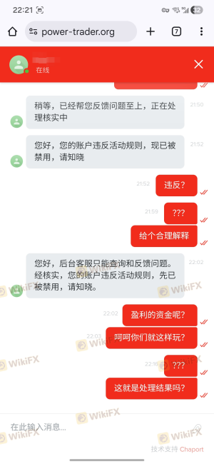 ความคิดเห็นของลูกค้าเป็นแหล่งข้อมูลที่มีคุณค่าในการประเมินความน่าเชื่อถือของโบรกเกอร์ บทวิจารณ์และคำรับรองสามารถให้ข้อมูลเชิงลึกเกี่ยวกับประสบการณ์จริงของผู้เทรดที่ใช้ Power Trading อย่างไรก็ตาม ความคิดเห็นเกี่ยวกับโบรกเกอร์นี้มีความหลากหลาย โดยมีข้อร้องเรียนจำนวนมากปรากฏขึ้น