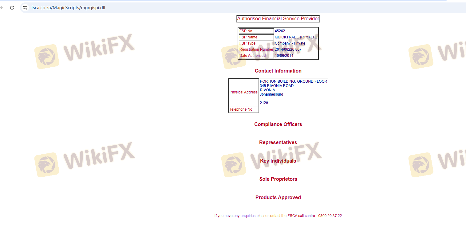 เกี่ยวกับความถูกต้องตามกฎหมายของโบรกเกอร์ฟอเร็กซ์ QUICKTRADE ทางบริษัทได้มีการจัดเตรียม แอฟริกาใต้ FSCA และ