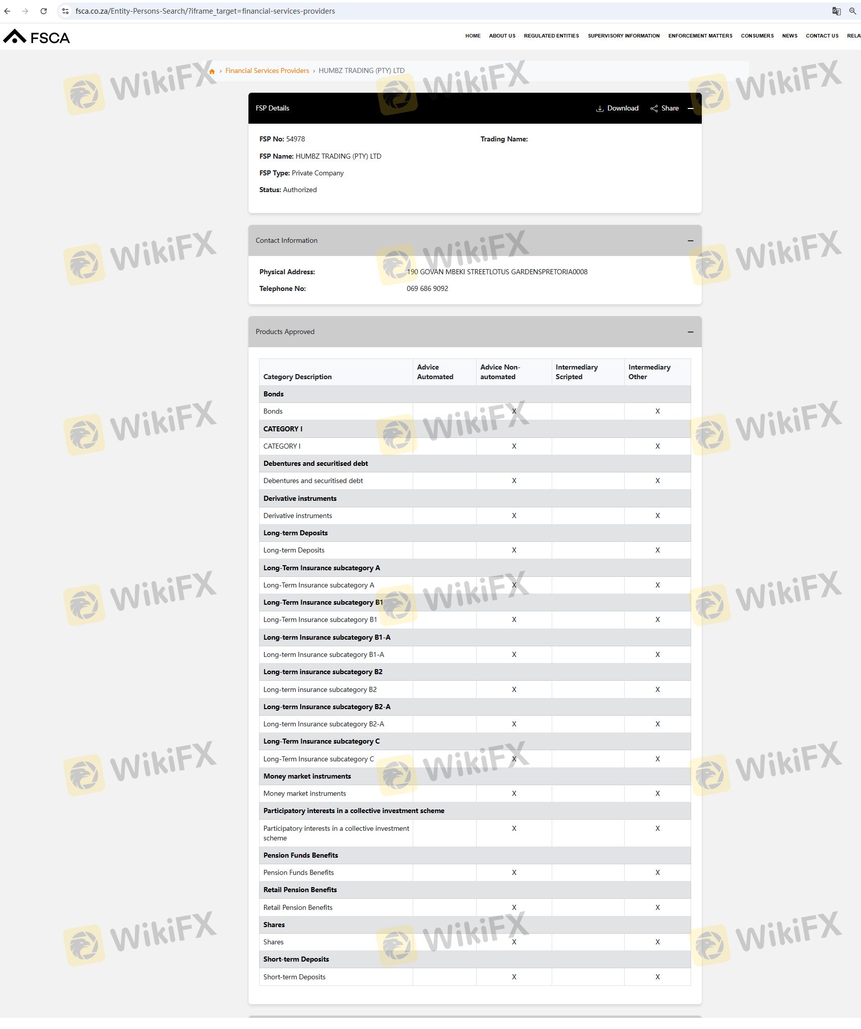 เกี่ยวกับความถูกต้องตามกฎหมายของโบรกเกอร์ฟอเร็กซ์ RKX ทางบริษัทได้มีการจัดเตรียม แอฟริกาใต้ FSCA และ