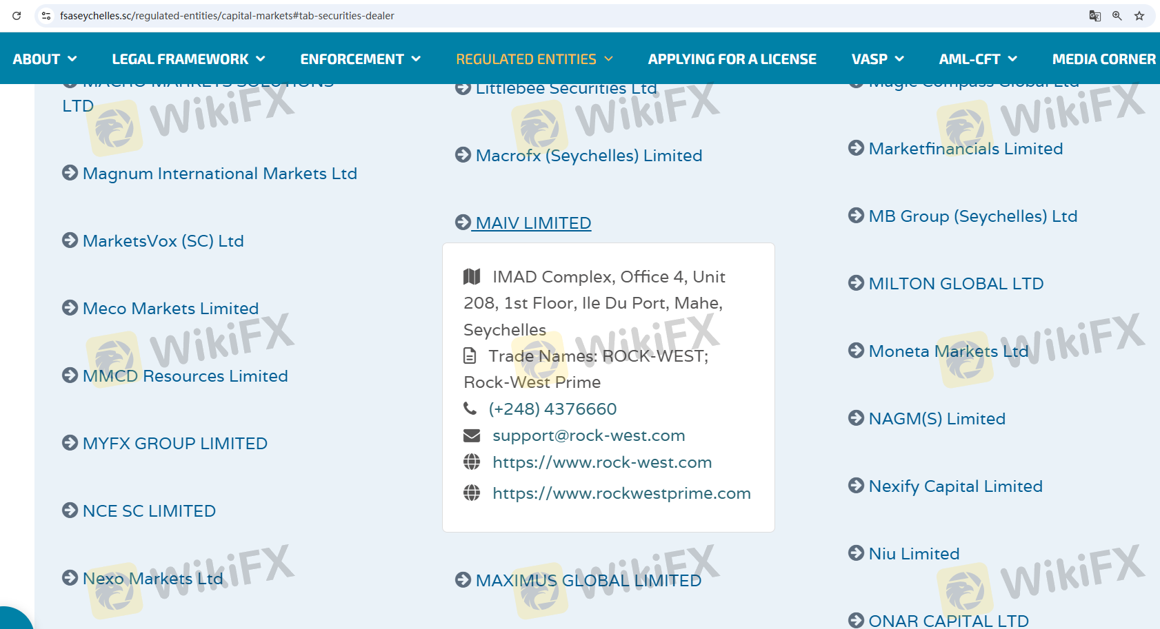 Rock-West ถูกบริหารโดย Maiv Limited ซึ่งเป็นบริษัทที่จดทะเบียนในเซเชลส์ โบรกเกอร์อ้างว่าดำเนินงานมาแล้วประมาณสองถึงห้าปี ซึ่งทำให้เกิดคำถามเกี่ยวกับความมั่นคงและประสบการณ์ในตลาด การขาดข้อมูลรายละเอียดเกี่ยวกับทีมผู้บริหารและคุณสมบัติของพวกเขายิ่งทำให้ความโปร่งใสของโบรกเกอร์ซับซ้อนขึ้น