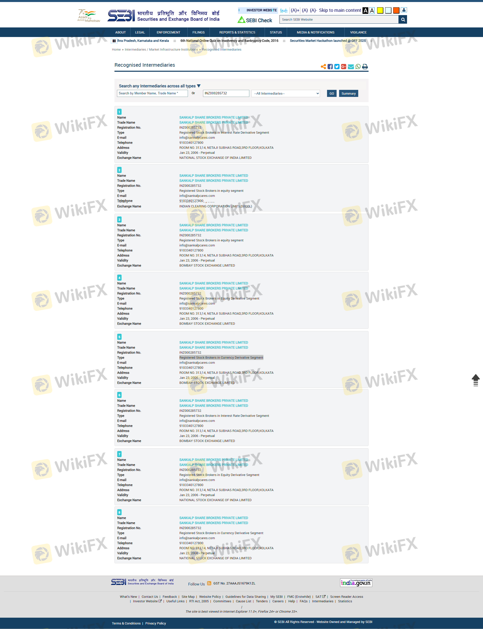 เกี่ยวกับความถูกต้องตามกฎหมายของโบรกเกอร์ฟอเร็กซ์ SANKALP ทางบริษัทได้มีการจัดเตรียม อินเดีย SEBI และ