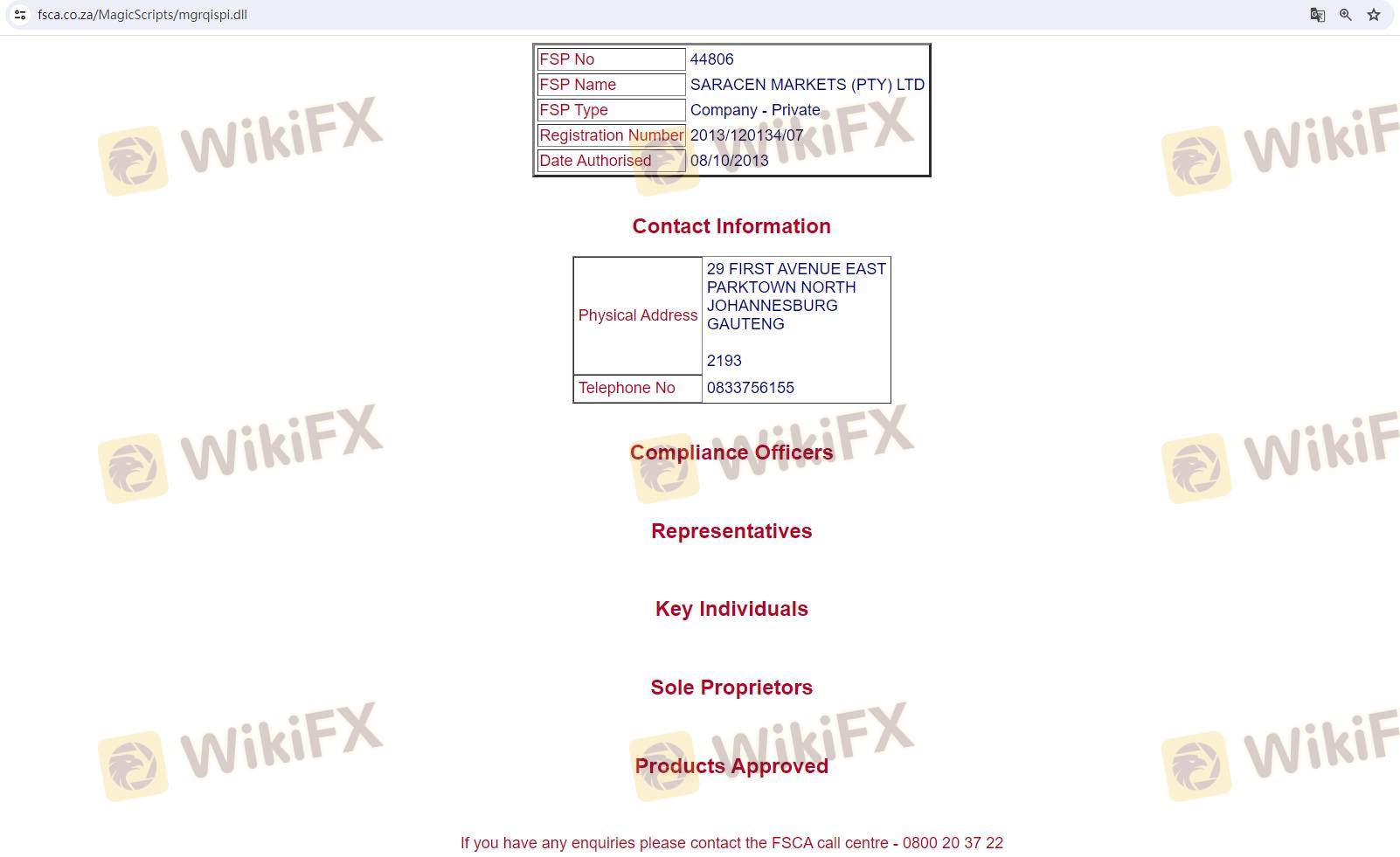 เกี่ยวกับความถูกต้องตามกฎหมายของโบรกเกอร์ฟอเร็กซ์ SaracenMarkets ทางบริษัทได้มีการจัดเตรียม แอฟริกาใต้ FSCA และ