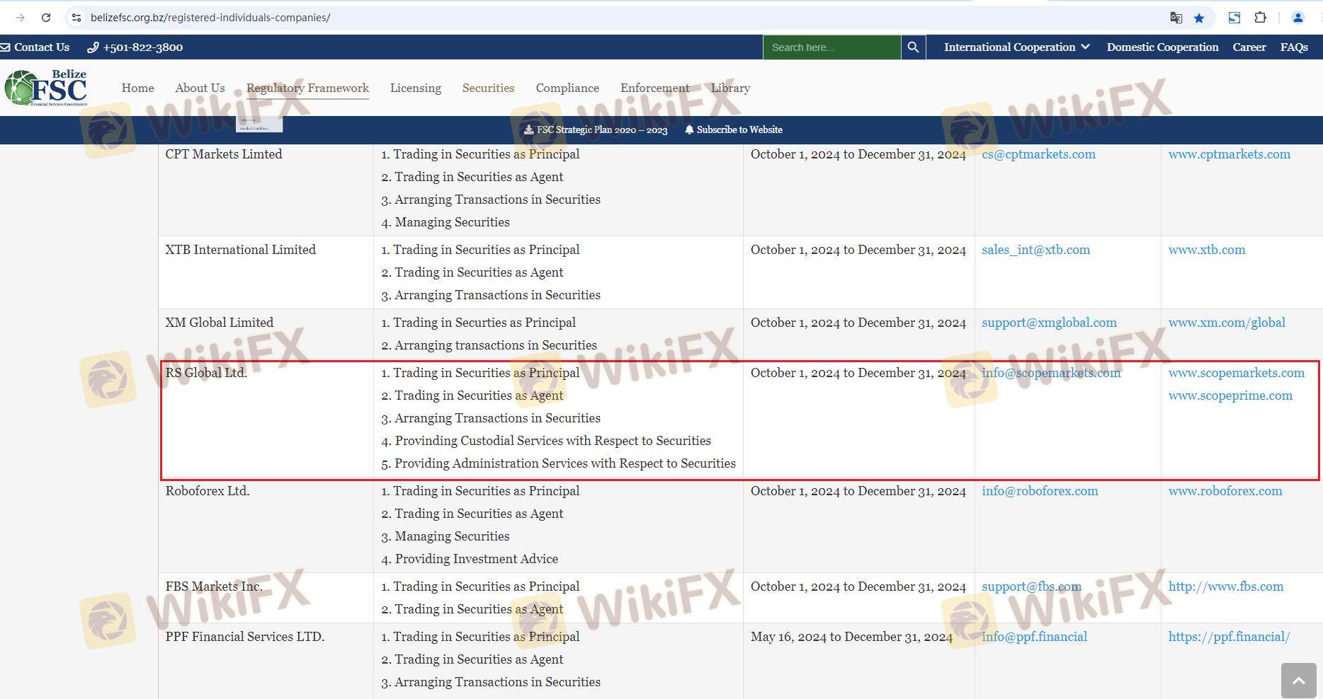 เกี่ยวกับความถูกต้องตามกฎหมายของโบรกเกอร์ฟอเร็กซ์ Scope Markets ทางบริษัทได้มีการจัดเตรียม ประเทศไซปรัส CYSEC, เซเชลส์ FSA, แอฟริกาใต้ FSCA, เบลีซ FSC และ (ยังมีการสำรวจภาคสนามเกี่ยวกับความปลอดภัย)