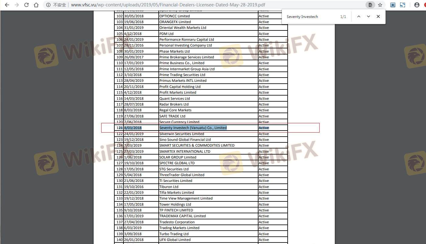 เกี่ยวกับความถูกต้องตามกฎหมายของโบรกเกอร์ฟอเร็กซ์ Seventy Brokers ทางบริษัทได้มีการจัดเตรียม วานูอาตู VFSC และ (ยังมีการสำรวจภาคสนามเกี่ยวกับความปลอดภัย)