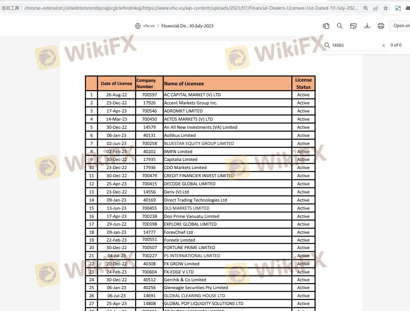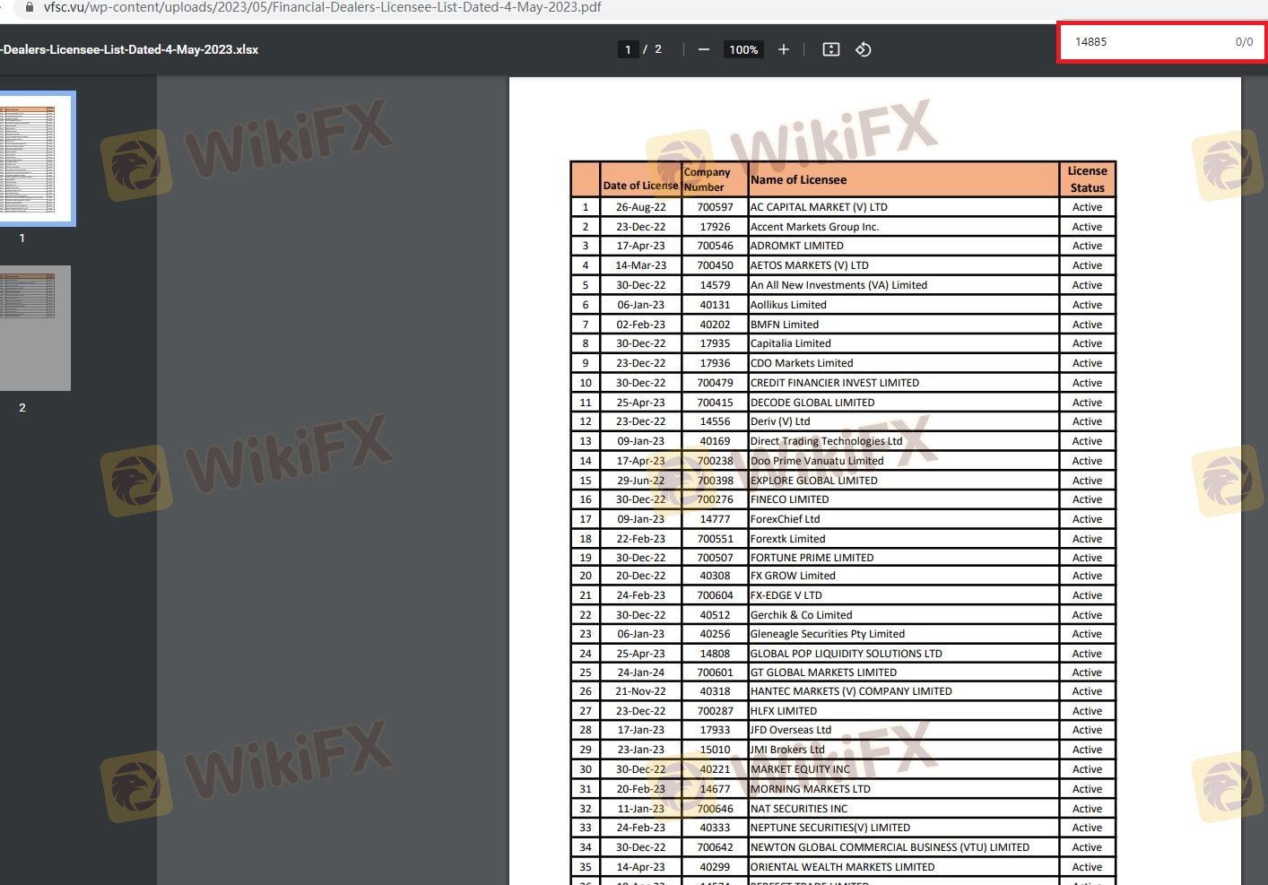 | VFSC | 14885 | วานูอาตู | ไม่พบ |