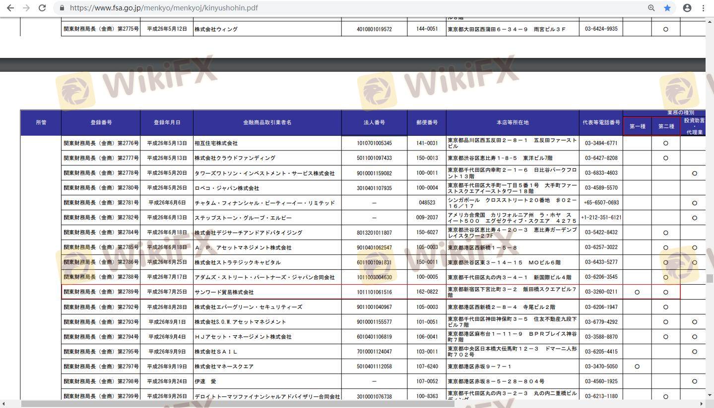 เกี่ยวกับความถูกต้องตามกฎหมายของโบรกเกอร์ฟอเร็กซ์ Sunward ทางบริษัทได้มีการจัดเตรียม ประเทศญี่ปุ่น FSA และ (ยังมีการสำรวจภาคสนามเกี่ยวกับความปลอดภัย)